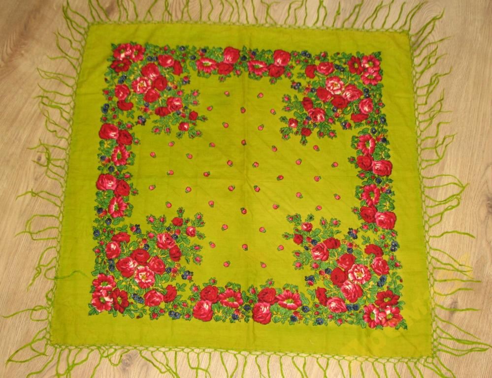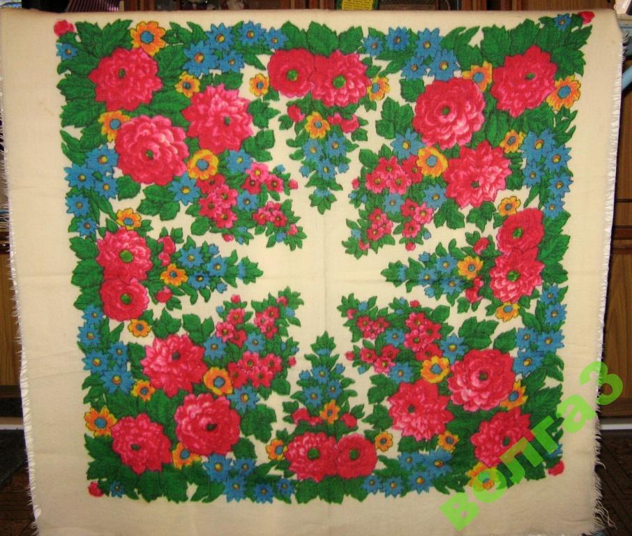 Тонкая шерсть 150 х 150 см. Чёрные кисти 50 см. Яркий насыщенный цвет. Идеальный сохран.