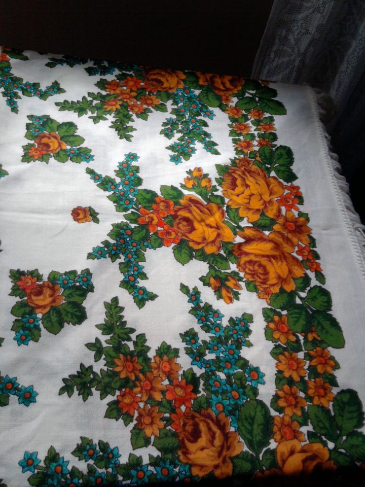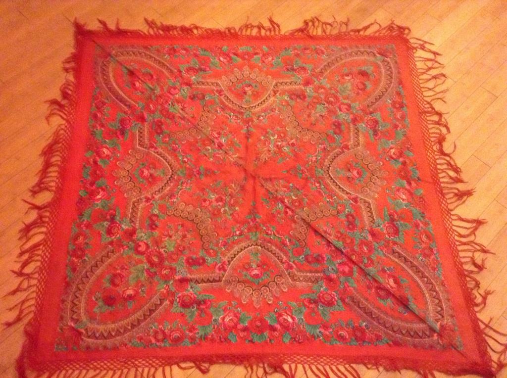 "Плотная шерсть 150 х 150 см. кисти 16 см. Яркий насыщенный морковный цвет. Идеальный сохран."