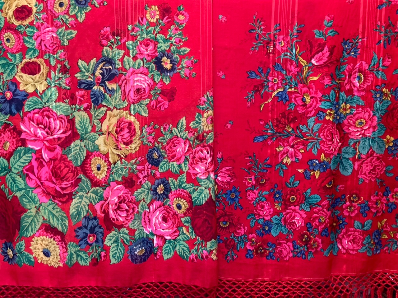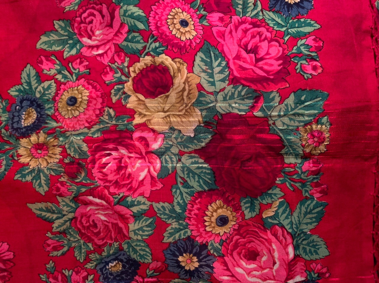 AcTpuD, какое ценное и интересное подтверждение, спасибо! Именно по таким сложным желтым розам она узнаваема. «Задушевный разговор» 1921, а «У самовара» пока не могу по дате определить. Спрошу в Русском музее. Можно, хотя бы приблизительно, предположить период бытования шали. Интересно, что сохранность очень высокая: бахрома и средник целые и только две маленькие потертости по просновкам с краю. Воду практически не окрасила совсем, что удивительно для краснопольных начала ХХ века.