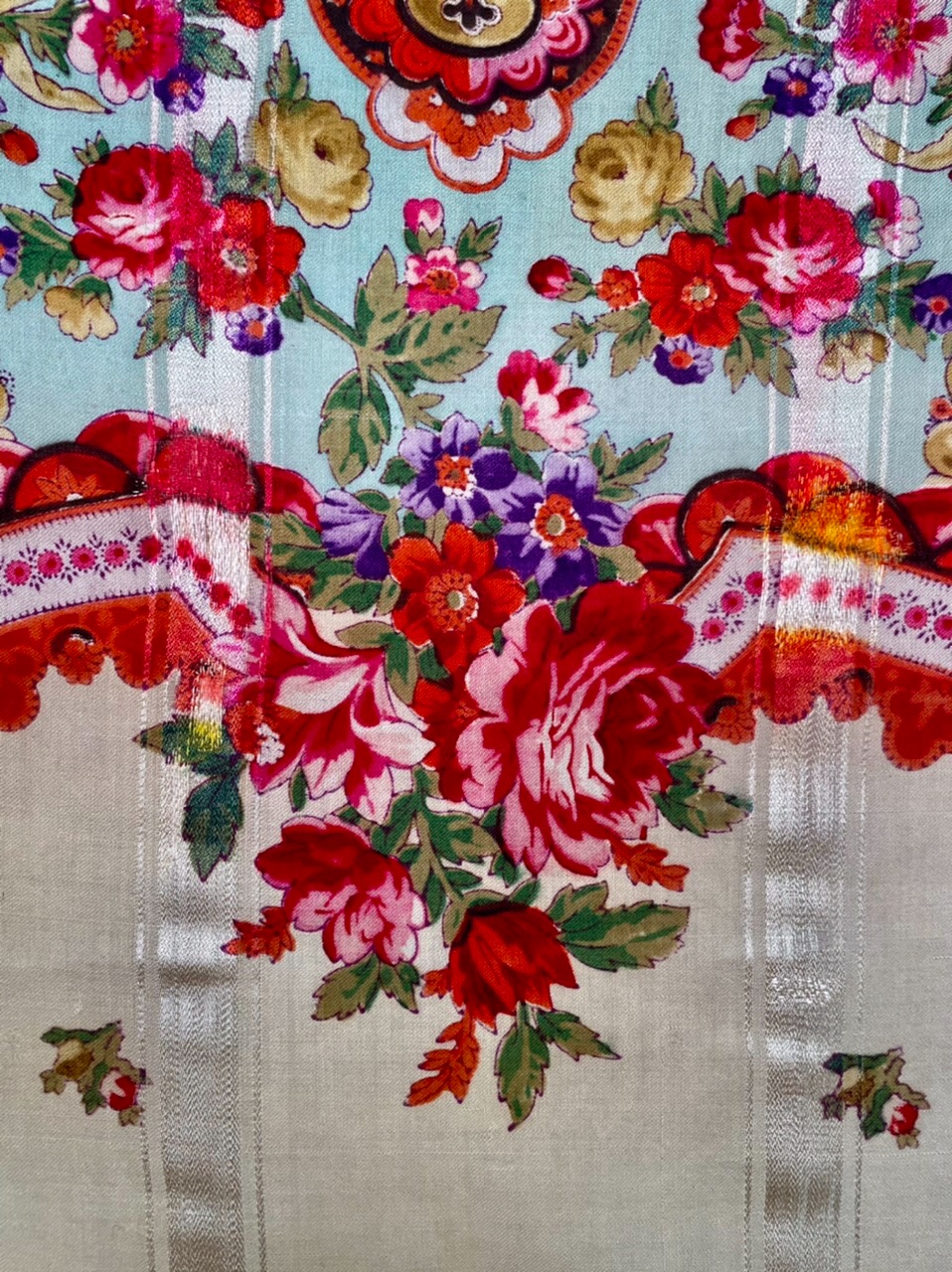 И да, цветы смотрятся объёмными - это эффект послойного нанесения краски на элементы рисунка. Сегодня, увы, на современных шалях этот эффект "объема" отсутствует. И всё же так хочется, чтобы взяла мануфактура в работу по восстановлению стариночку. Есть же и художники, и технические возможности. Вот бы был фурор!