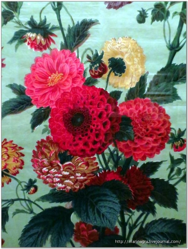 Напрашивается вопрос, не является ли "Ботаника" копией какой-либо китайской скатерти? Я так не думаю. Поскольку композиция рисунка всё-таки платочная - углы и боковые приставки, штампочки по полю. Но всё-таки очень хочется подержать эту "Ботанику" в руках!