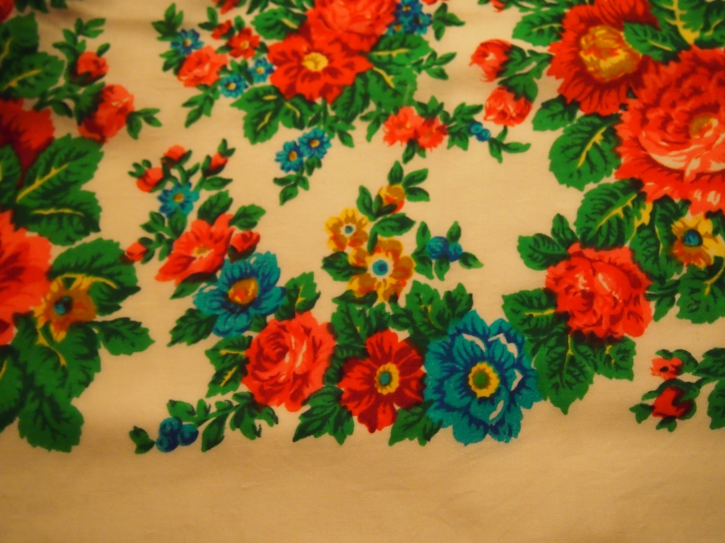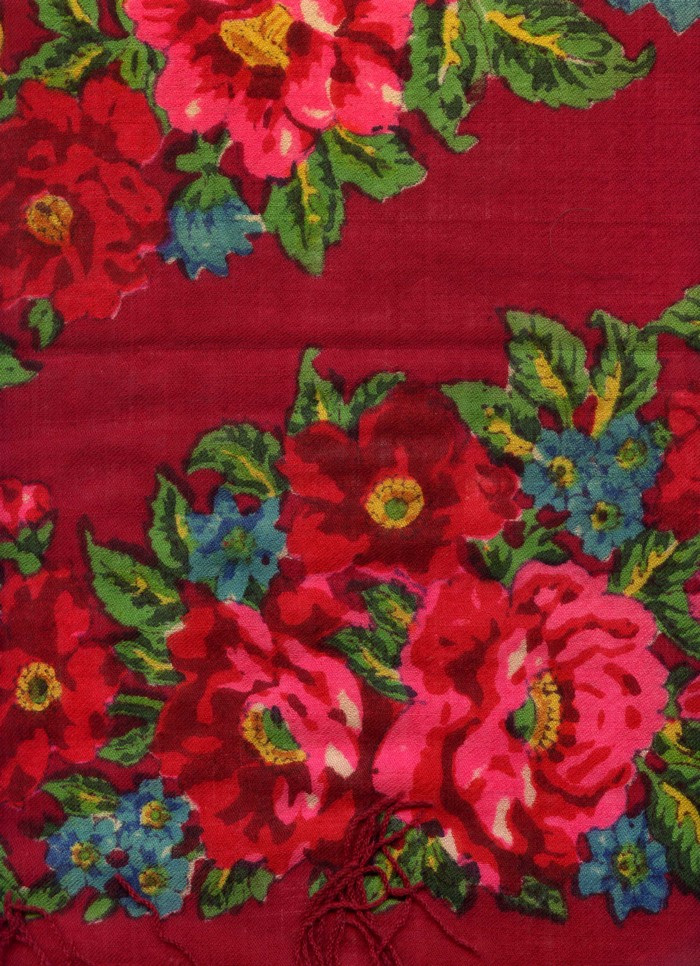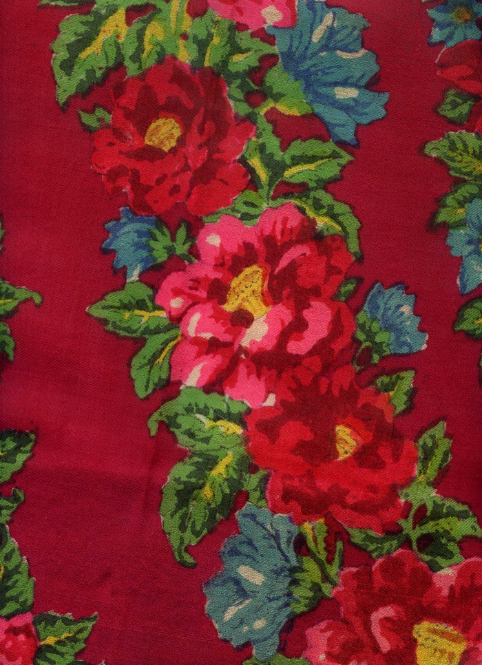 Что касается техники печати Вашей шали, то у меня нет никакого сомнения, что шаль напечатана шаблонами. Думаю, шаль Ваша годов шестидесятых, когда фотофильмпечать внедрялась в производство.