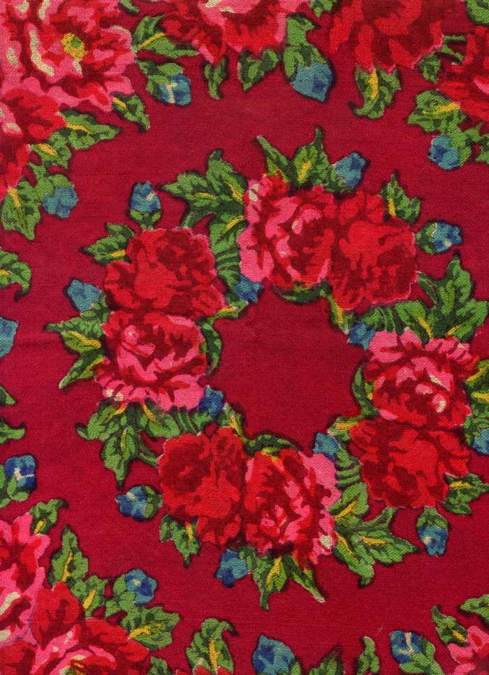 Еще сканы шали "Розы по кругу". Ручная набойка.