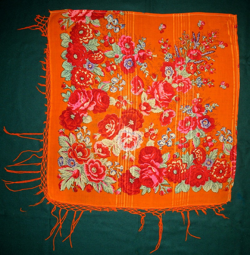 Этот платок я обнаружила в разделе "Мир русской деревни". Тоже очень старинный, судя по состоянию глубокой винтажности.