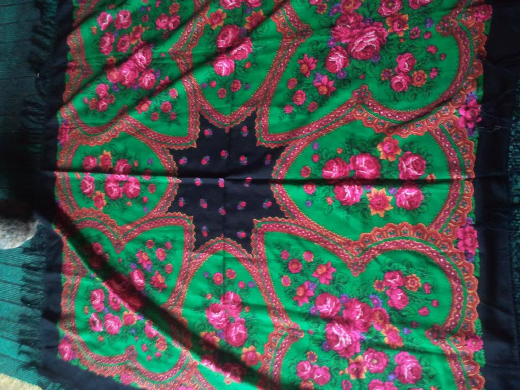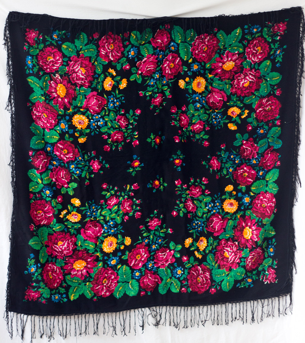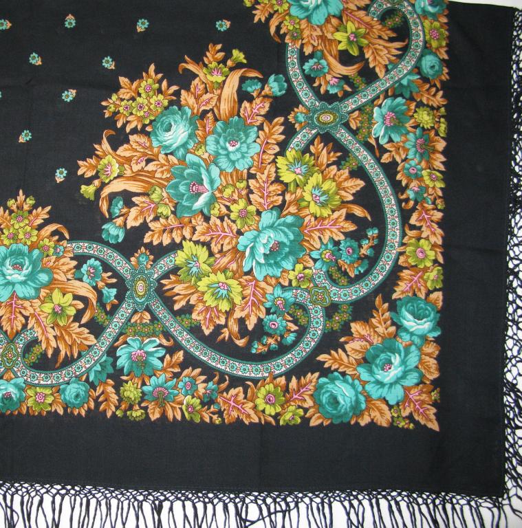 Решила выложить фотографии шерстяной шали по рисунку С. Рыжова в чёрном колорите, чтобы больше не таскать подобные с аукционов,