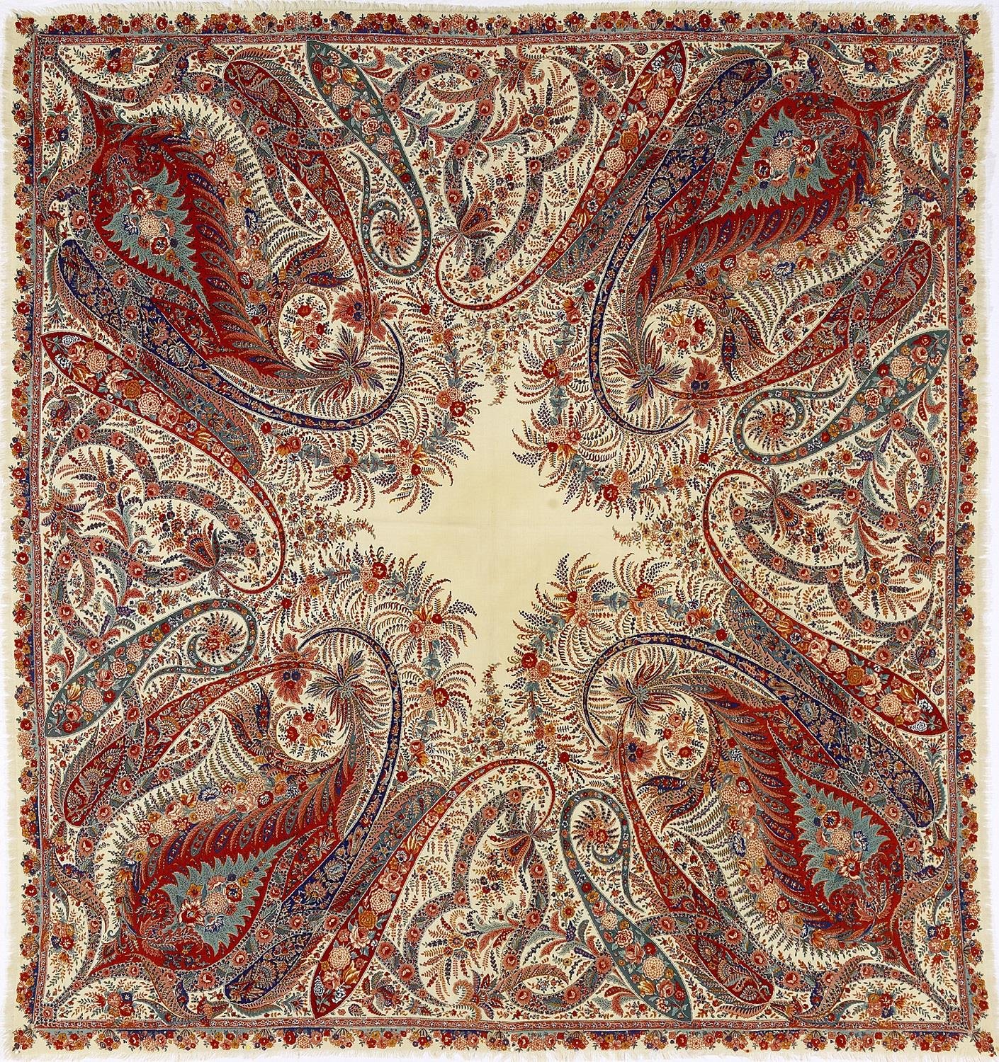 Плотная шерстяная мебельная ткань, блочная печать, мануфактура Thierry-Mieg & Cie, Мюлуз (Эльзас, Франция), 1860