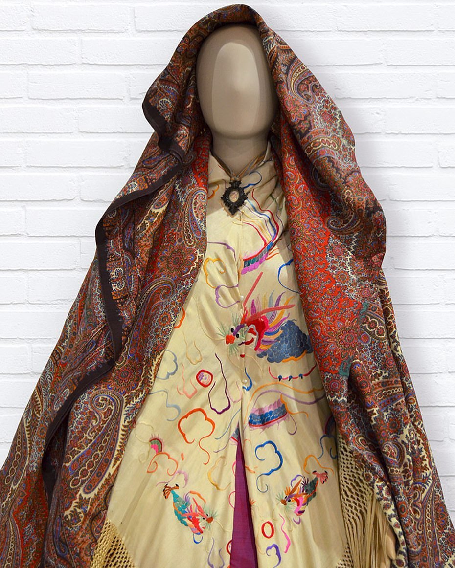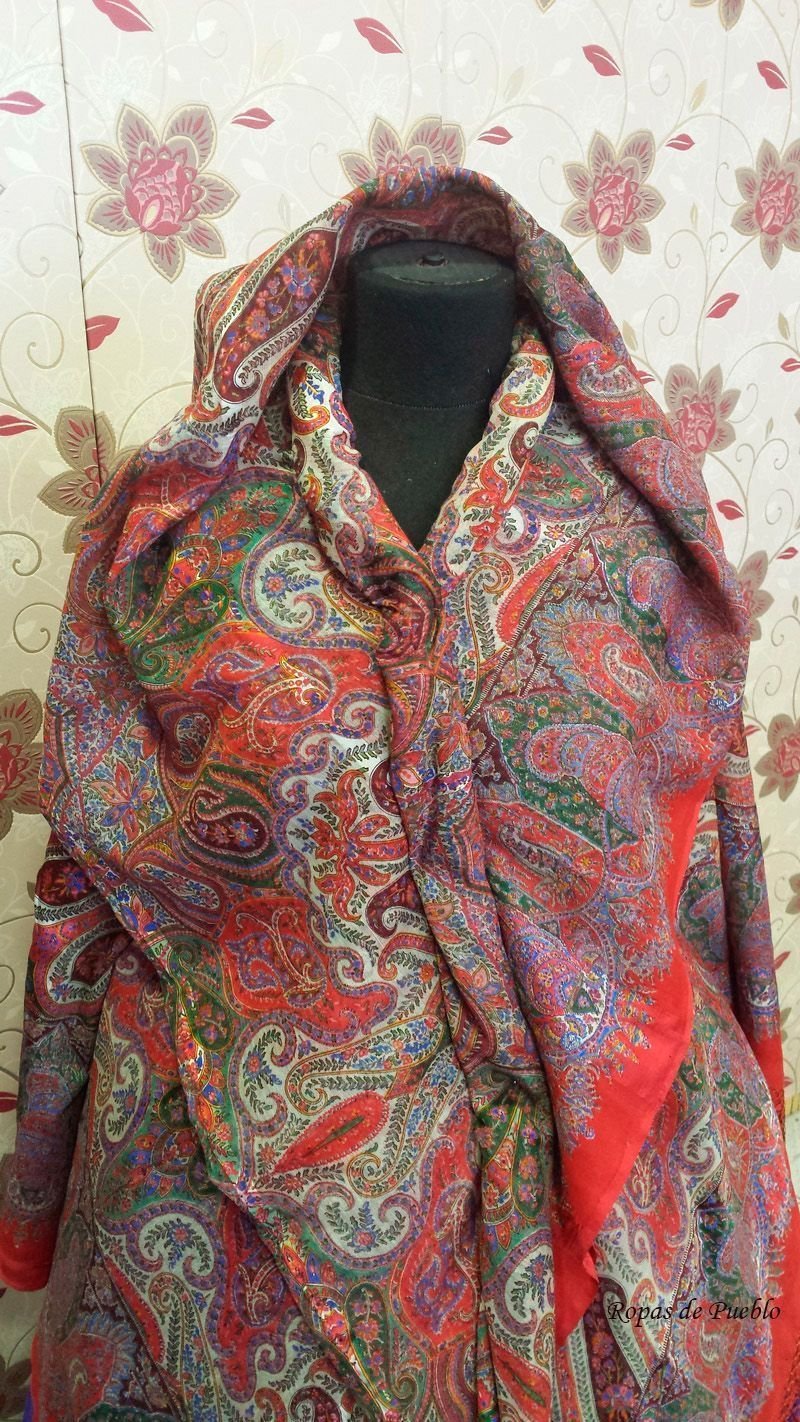Старинная шаль «Ocho puntas» или «de capucha», шерсть/шелк, просновки, ручная набивка, между 1850 и 1860 гг.