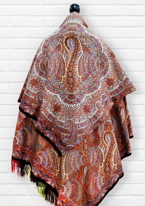 «Шаль 135х135 старинная декорированная по кайме оригинальной тройной рамкой