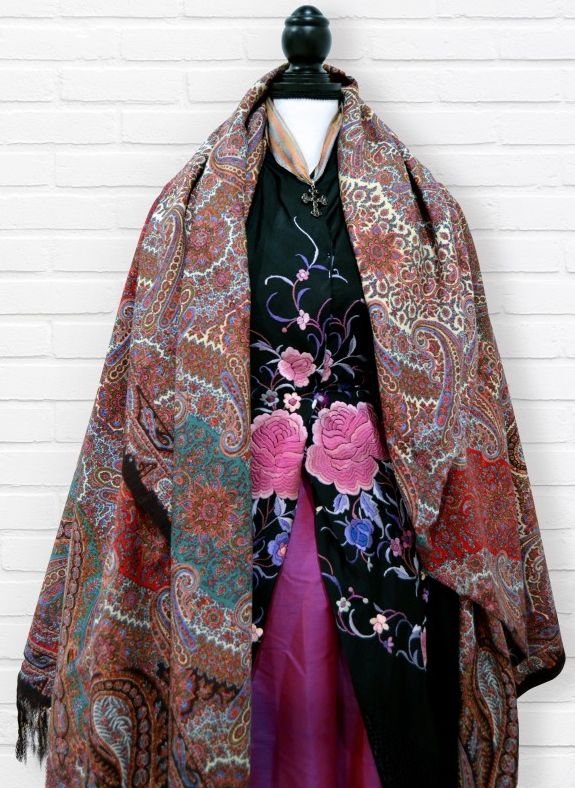 Поначалу думала, что такие шали, заменяющие верхнюю одежду, были тканые, тяжелые.