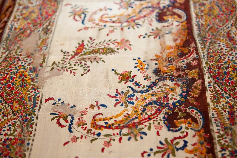 Края шали украшены кашемировыми кистями, которые тоже хорошо сохранились.