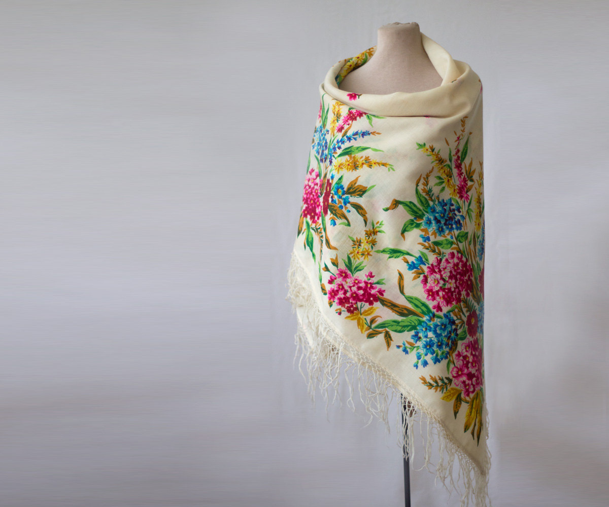 Сохраню для архива платок В.И. Зубрицкого "Жостово". Размер указан как 146х146 см