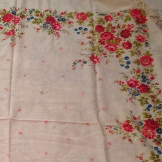 Старинная шаль с цветочной каймой на просновках