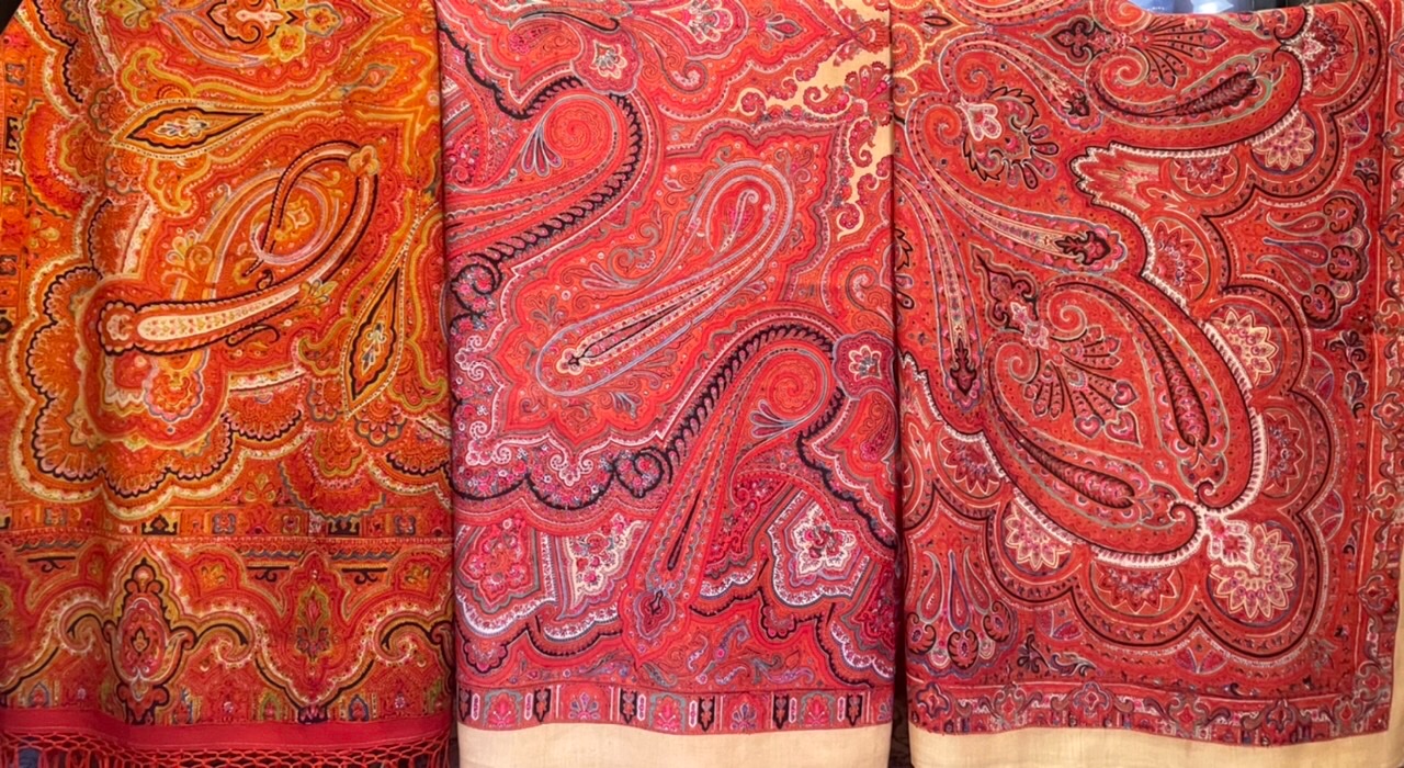 Фрагменты рисунка старинной шали с восточным орнаментом: огурцами, бобами, опахалами или павлинами с вписанными мелкими розочками