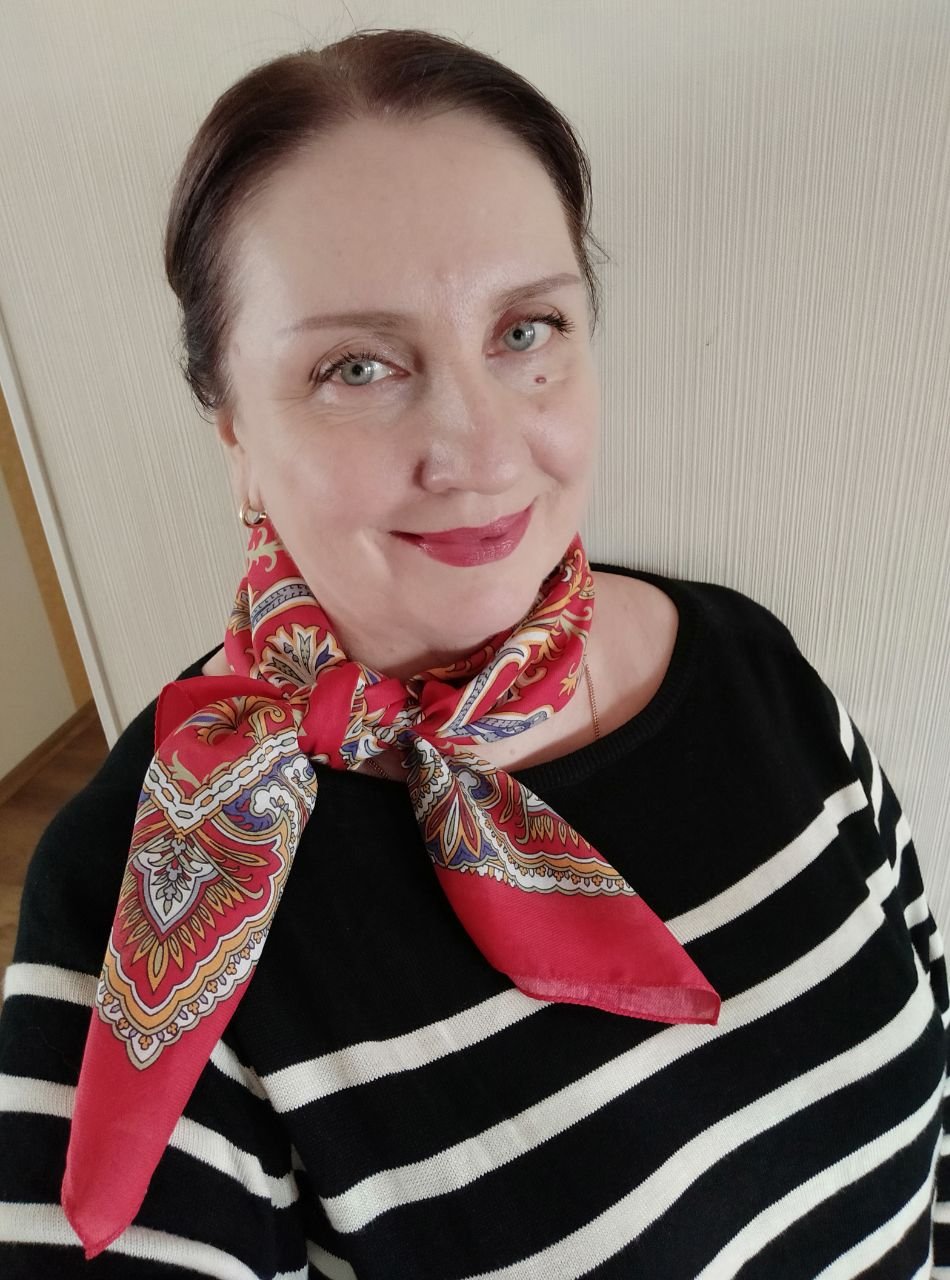 Golden Fox писал(а): ↑09 апр 2024, 11:44Ужасно хочется красного, ношу и ношу. Сегодня вдруг случилась почти жара, потому не шерсть, а хлопковый малыш Волшебная флейта ( а потому что нету у меня красного шелка, такое вот горе, сплошь синий, голубой да фиолетовый). Мне кажется, что с полоской он как раз. Ярко как Ася! И всегда удачная помада! Шёлк красный Солнечный город недавно тоже с полоской надевала, энергичный такой платочек)) А эта флейта оттенок красного красивый очень. У меня с помадами проблема скатывания, не посоветуете марку?![]()