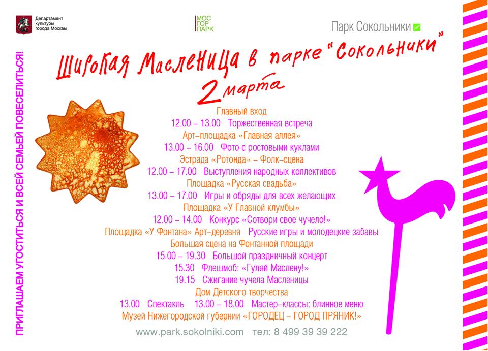 Обещала Чаровнице, но может и ещё кого-нибудь заинтересует:программа масленичных гуляний в Сокольниках