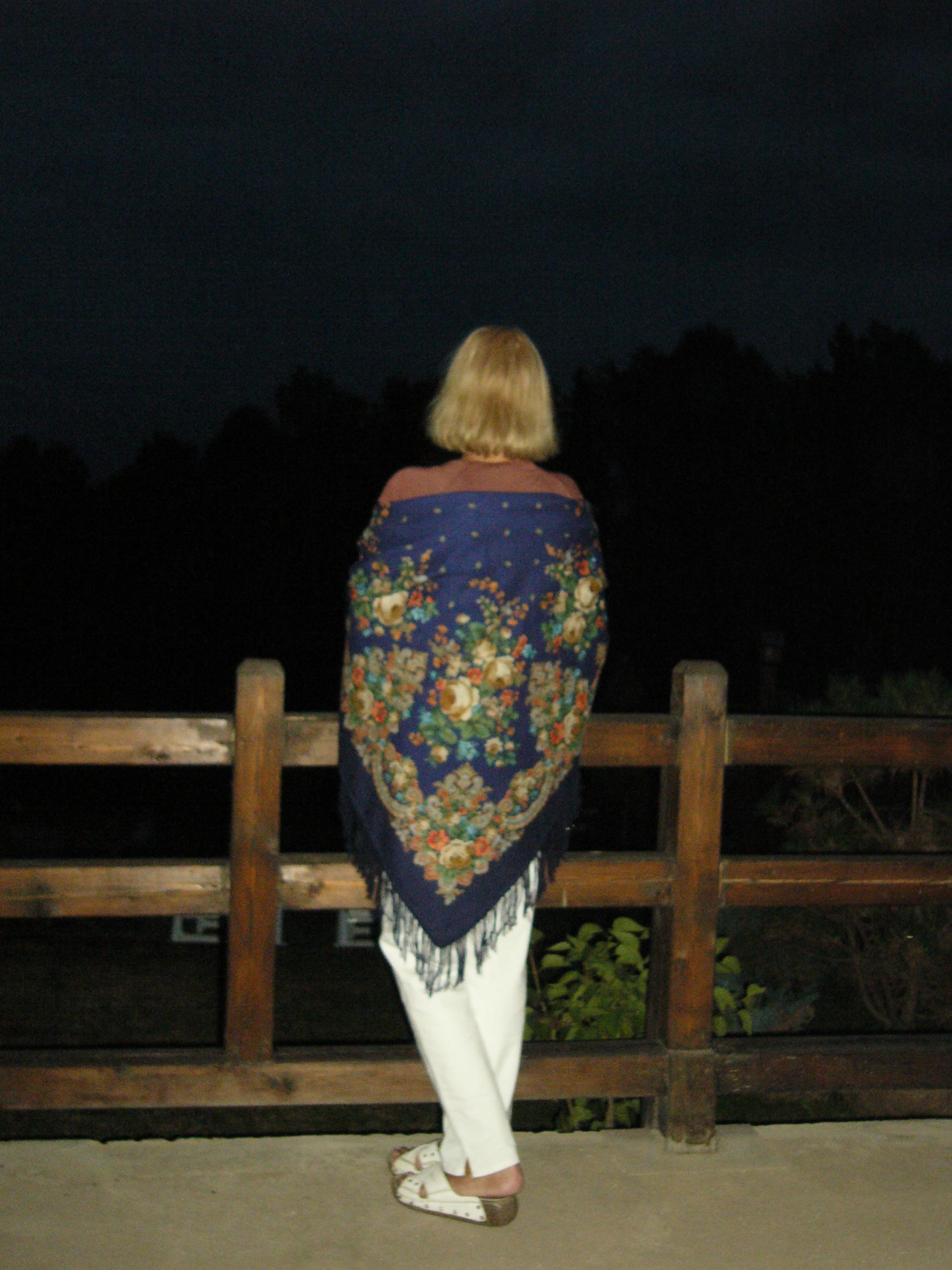 У меня "Журавушка" исключительно весенне-летний платок. Может быть из-за того, что белый?