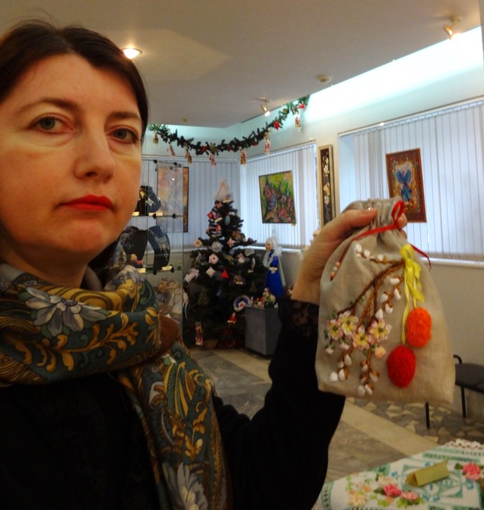 Сегодня была на выставке "Волшебная нить". Среди экспонатов есть работы с новогодней тематикой.