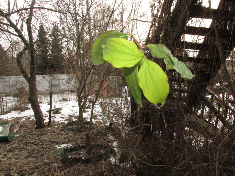 Boulangerie, это реальный пейзаж за моим окном и всамделишные зелёные листья жасмина (чубушника) ! Днём 1-го января!У нас в Никольско-Архангельском. Я сама удивлена очень! Чудесааа...