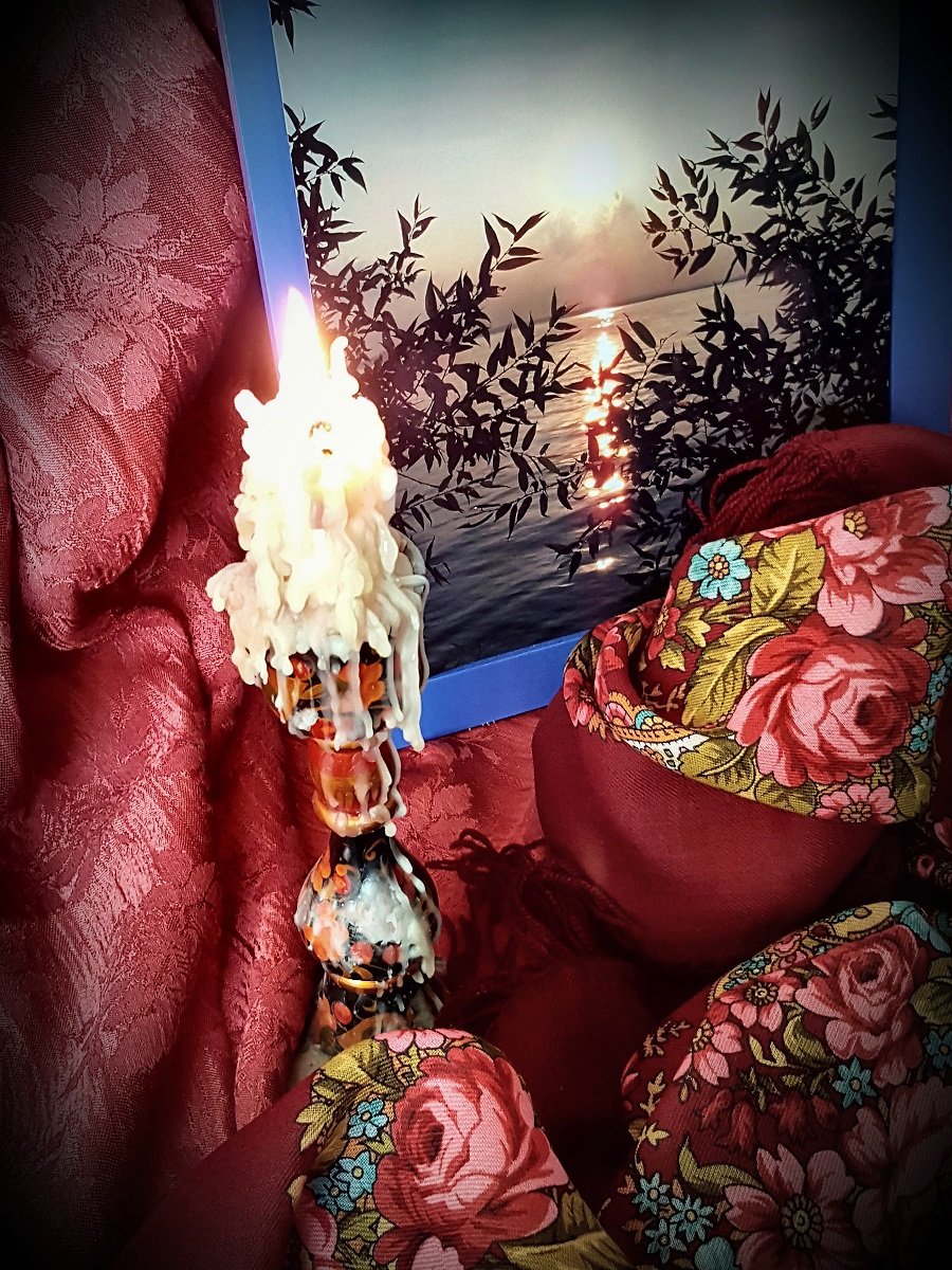 Платок шерстяной с шерстяной бахромой "Вечерок", вид 4, 89x89 см. Художник: Зиновьева Клара.