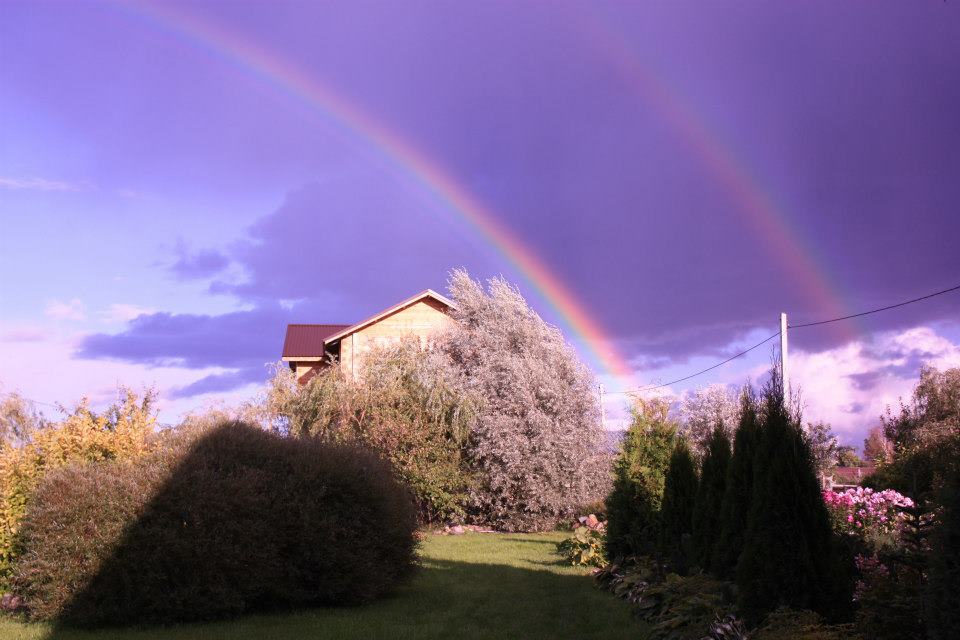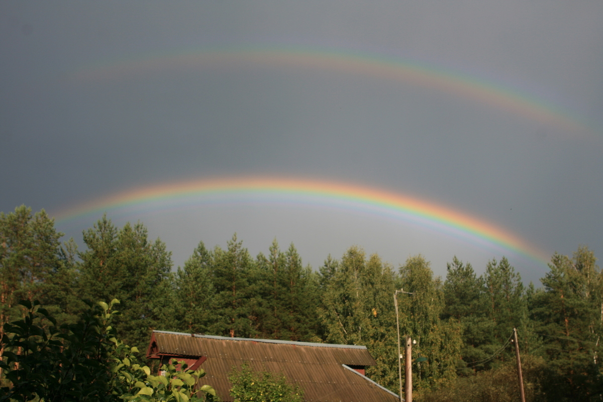 А из нашего окна, 3 сентября, двойная радуга! (в деревне)