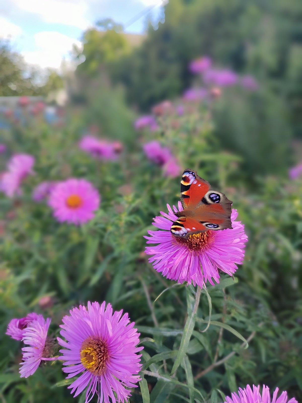 Небольшой сад с грядкой левкоев,