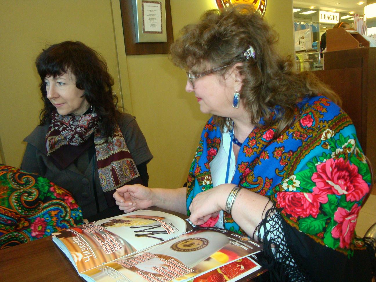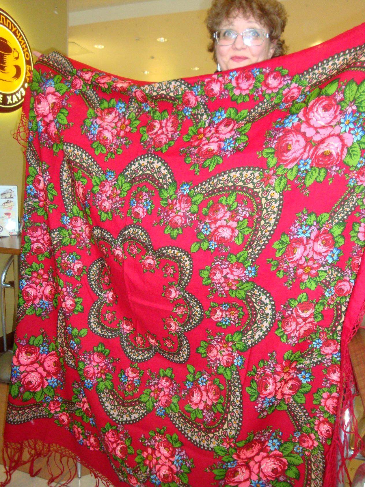 Началась встреча по традиции с примерки платков и шалей в фирм.магазине, затем участники переместились в кафе, обсудили все насущные проблемы, далее были рассмотрены и , конечно, примеряны раритетные шали.