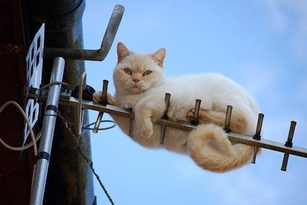 Это точно! Кот с книжкой не просто читает, а сосредоточен и собран...А тот, который на антенне , просто смотрит на всех, как на примитивных и недоразвитых.