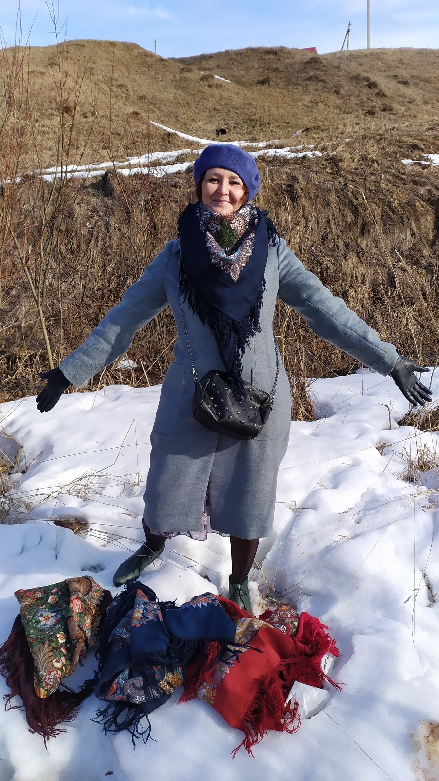 А у меня-утренняя прогулка за ключевой водой с платками Татьяны Сухаревской