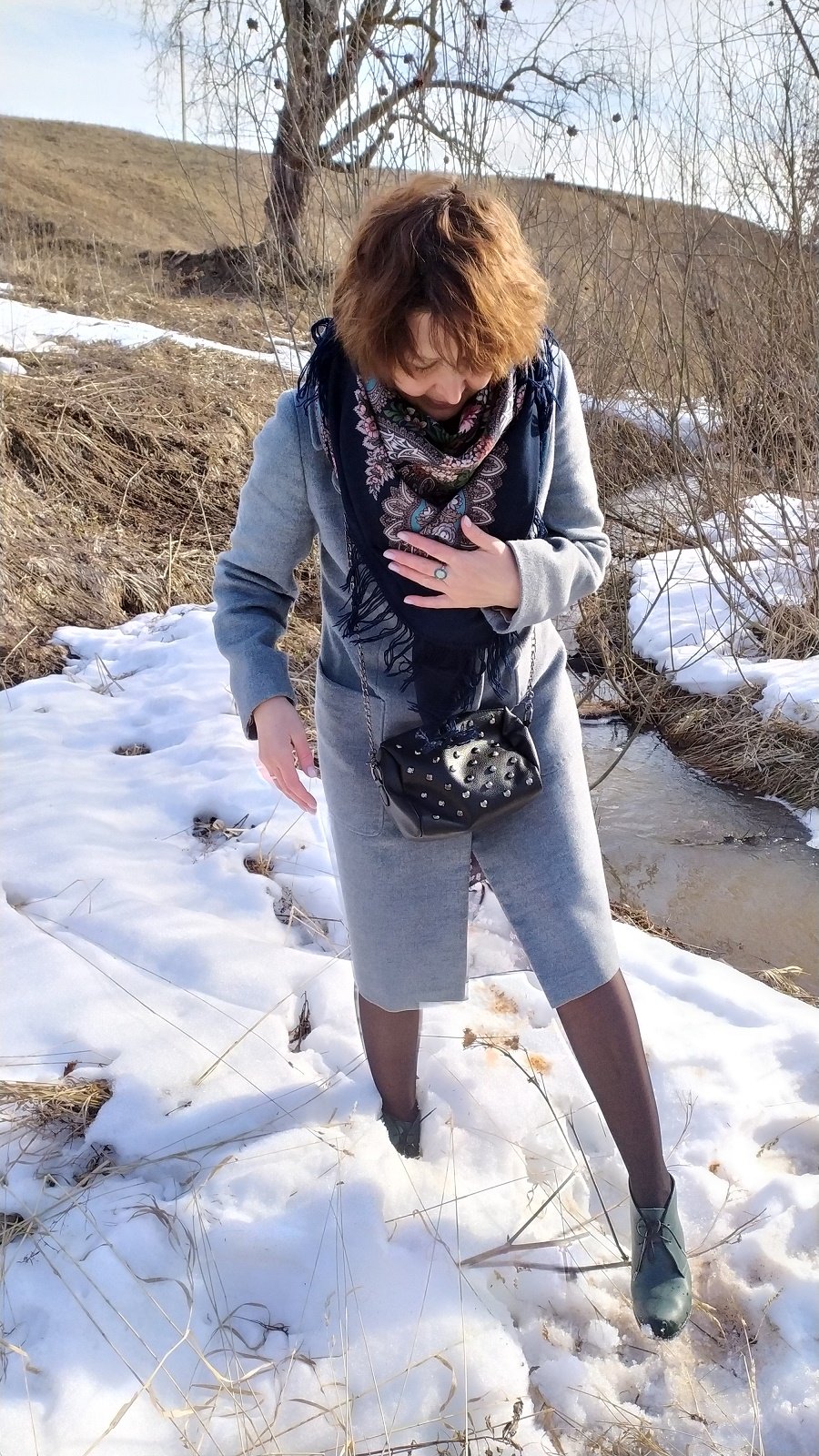 Таня Имбирь, гламурненько прогулялась за ключевой водой! Беретик, сумочка, ботиночки ;)
