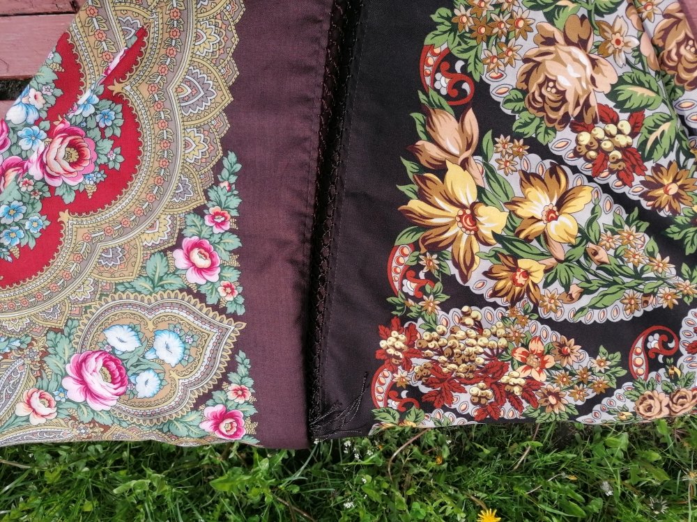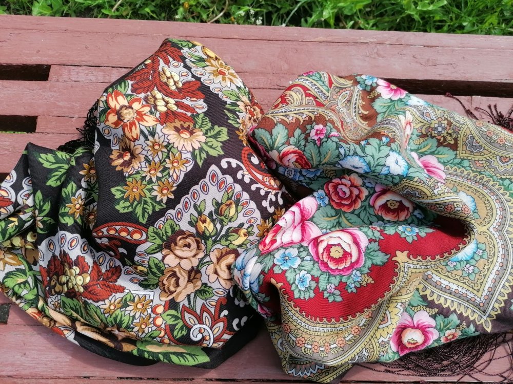 Перед закрытием вчера заскочила в магазин, примерила и купила, в стандарте, печать март 2022 года. Довольна, не знаю как дальше, будет ли носиться, но в голове сидела всю весну. Вот летом скупаются мрачнушки, потому что кругом цвета полно, а зимой яркие платки и шали. Приехала на дачу последние лучи ловила на закате.