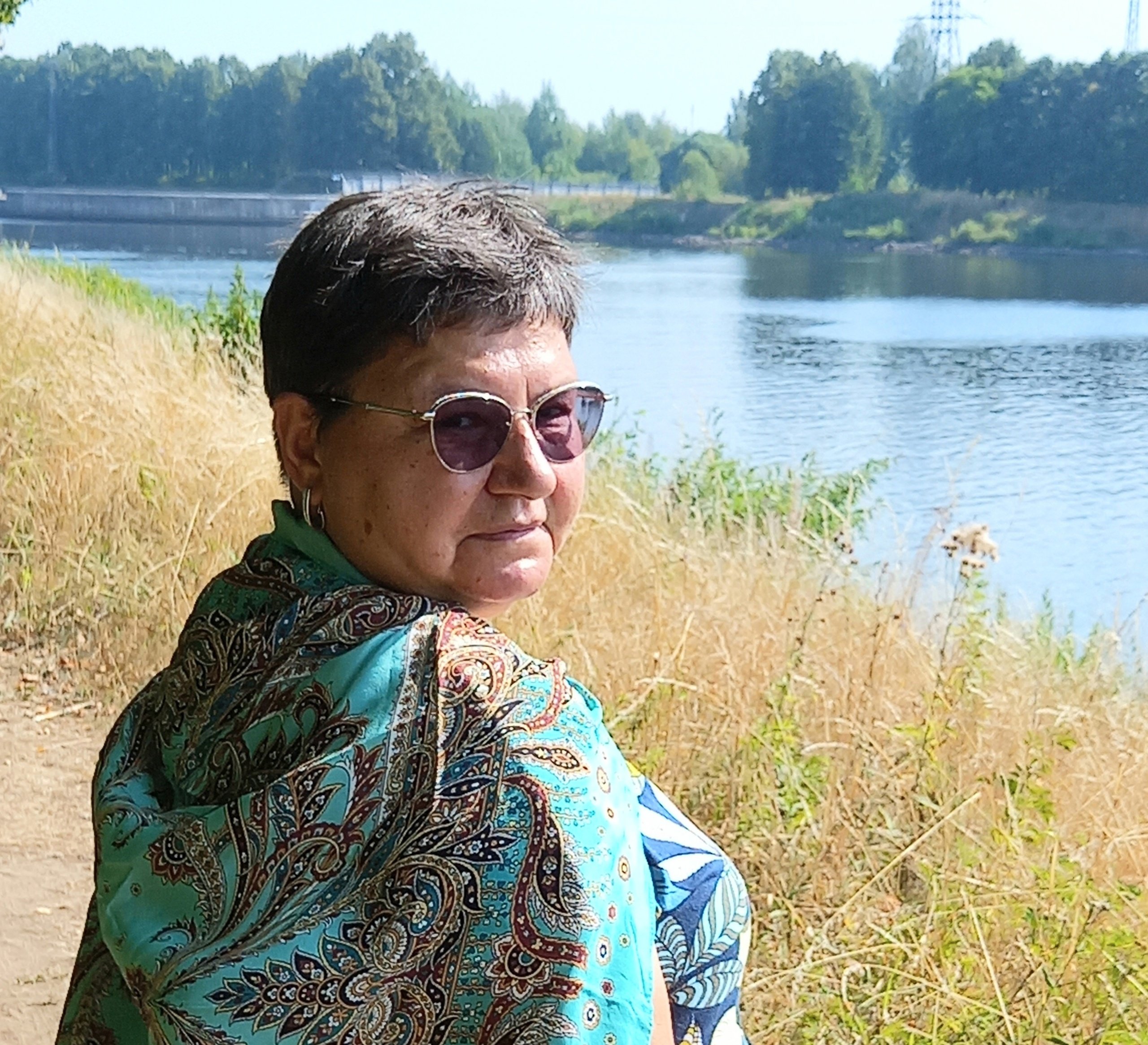 Коралловый бриз такой прохладный! Очень красивый платочек. Отлично на вас!