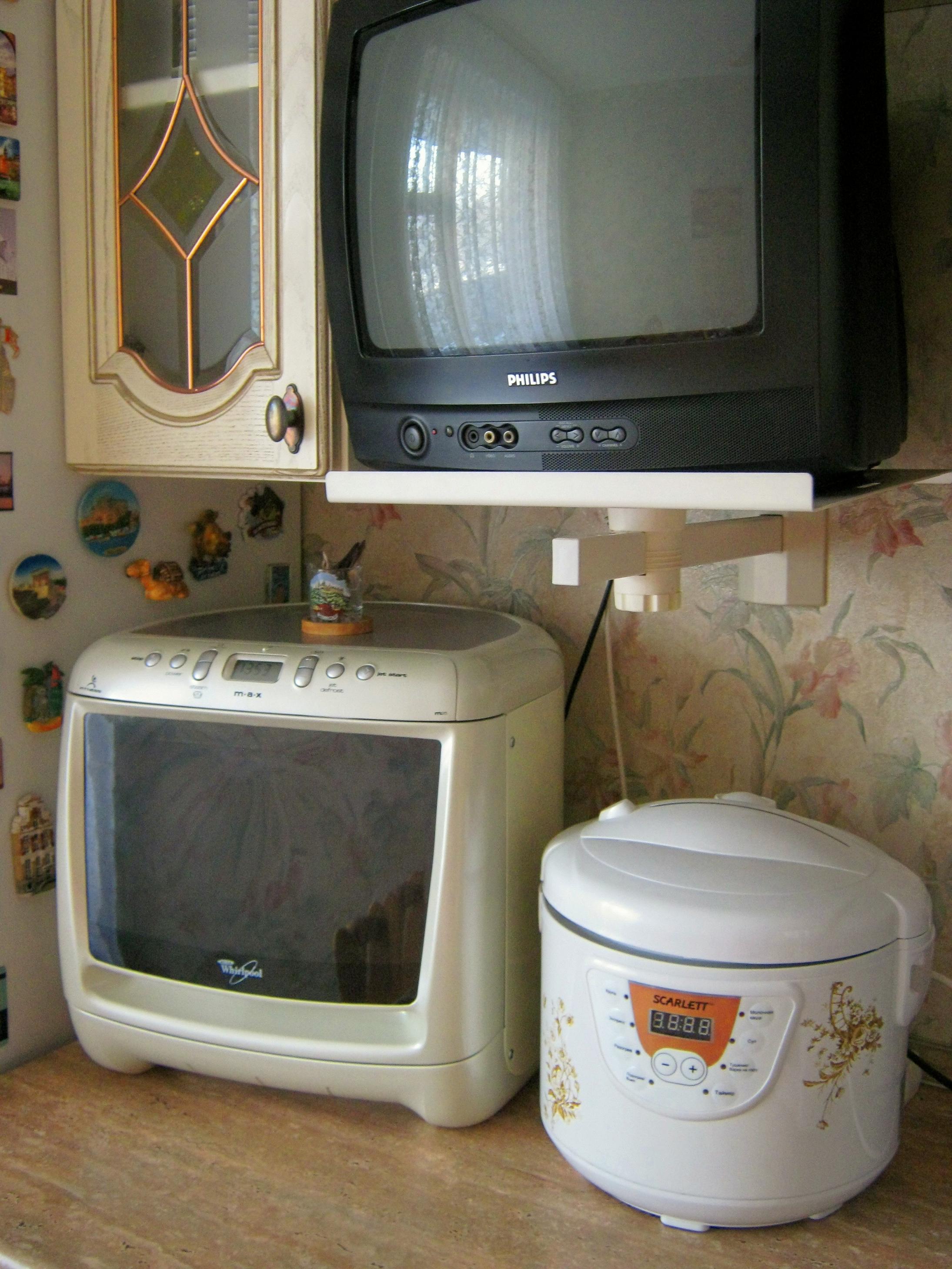 Пробрёв мультиварку с цветочками, я поняла, что та громадная микроволновка (которую мне давно отдали) совсем не вписывается ни по размерам (мультиварка на помещалась категорически), ни по стилю.
