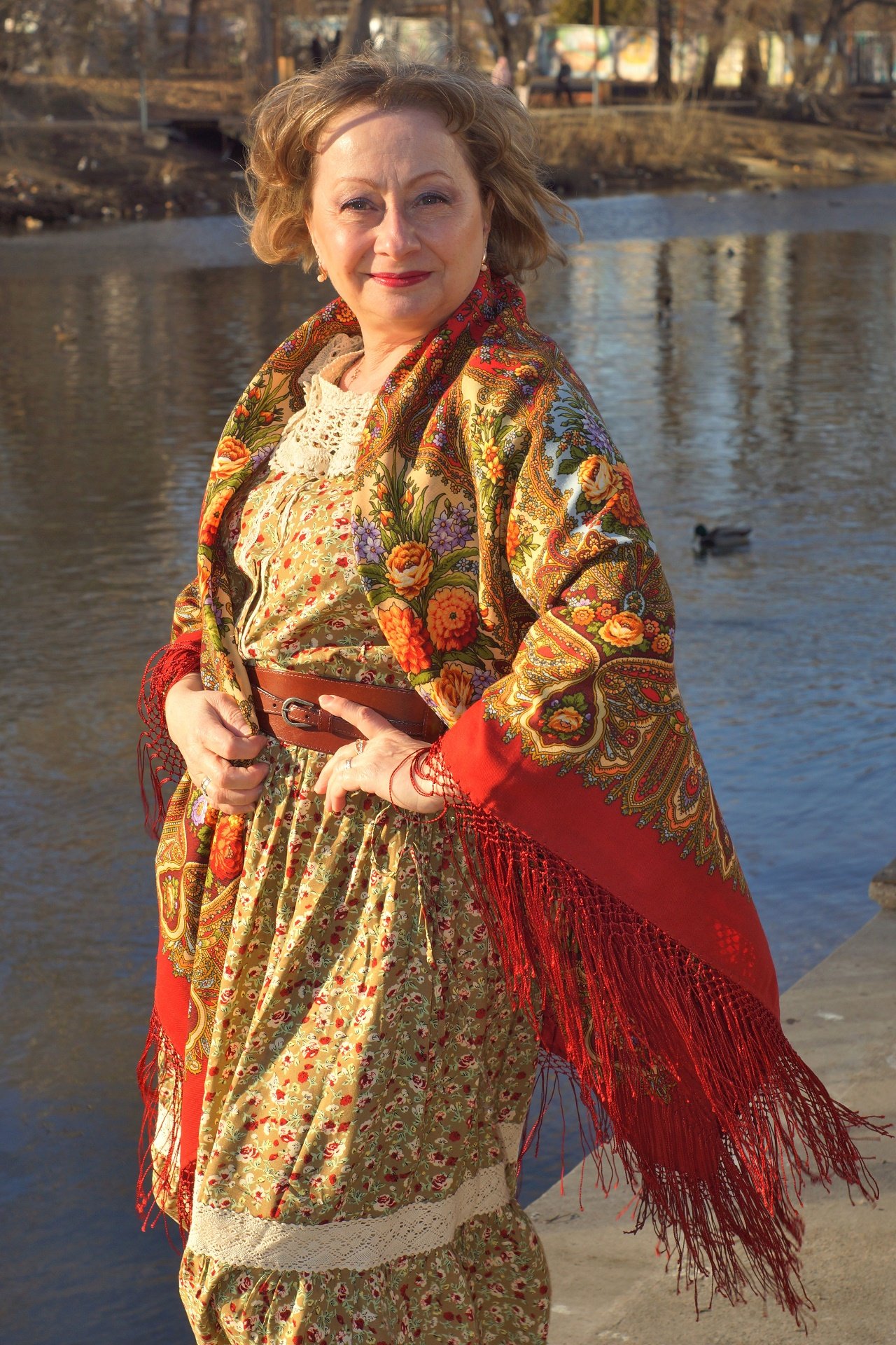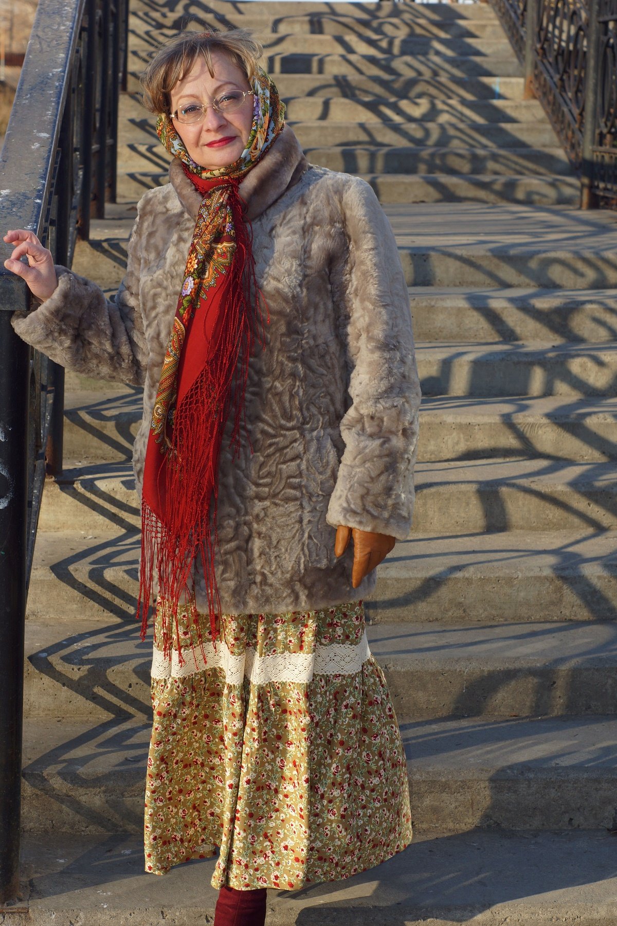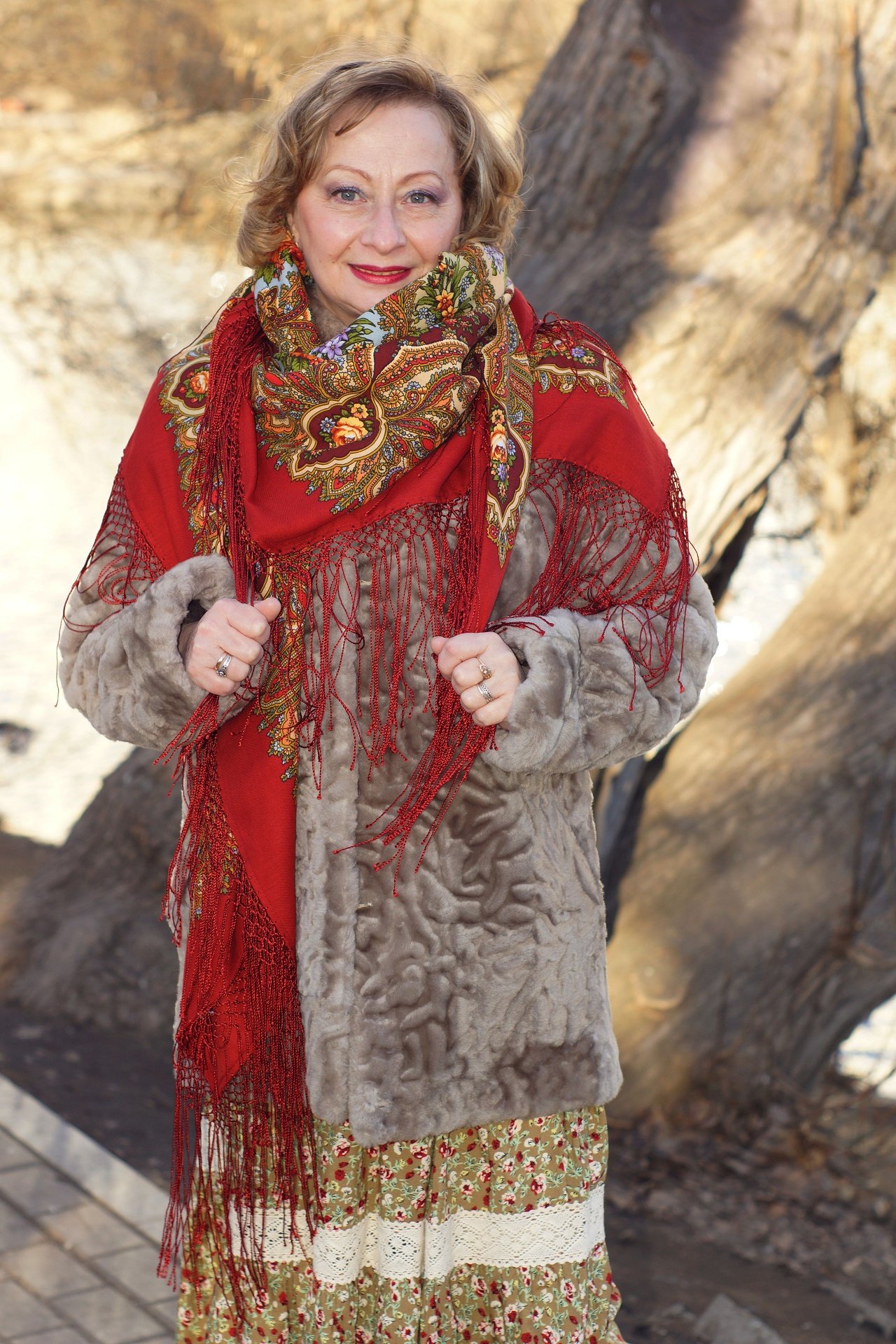 Наташа, как прекрасно в шали Мороз и солнце! Юбка, сумочка, белое пальто, шаль, всё так хорошо сочетается и очень идёт! В Утренних грёзах тоже отлично!