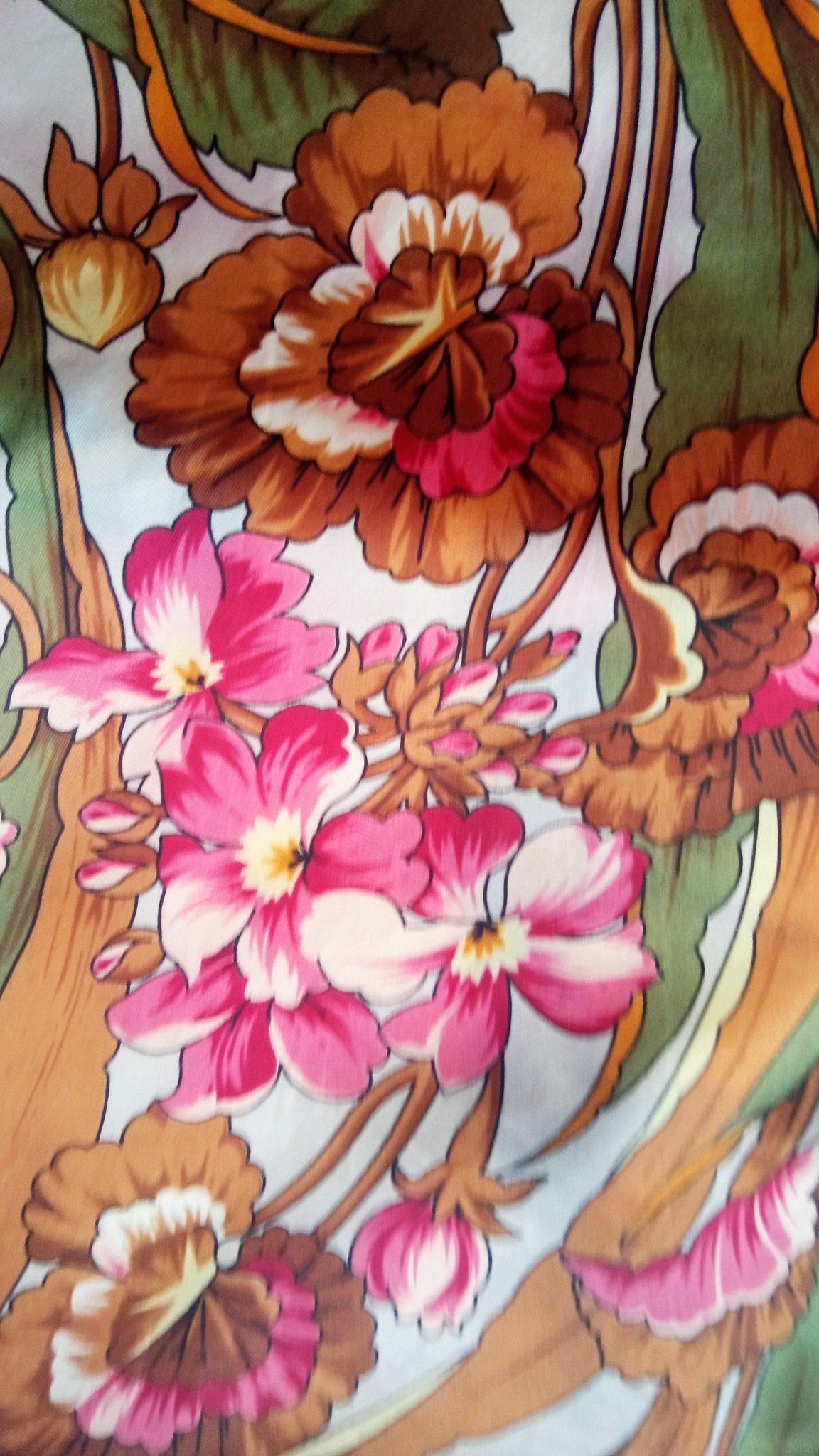 Фотографировать очень сложно, атлас такой блестящий. Платок куплен почти сразу после выхода, уже и гулял, и стирала я его. Для меня он очень носибельный и дружелюбный.