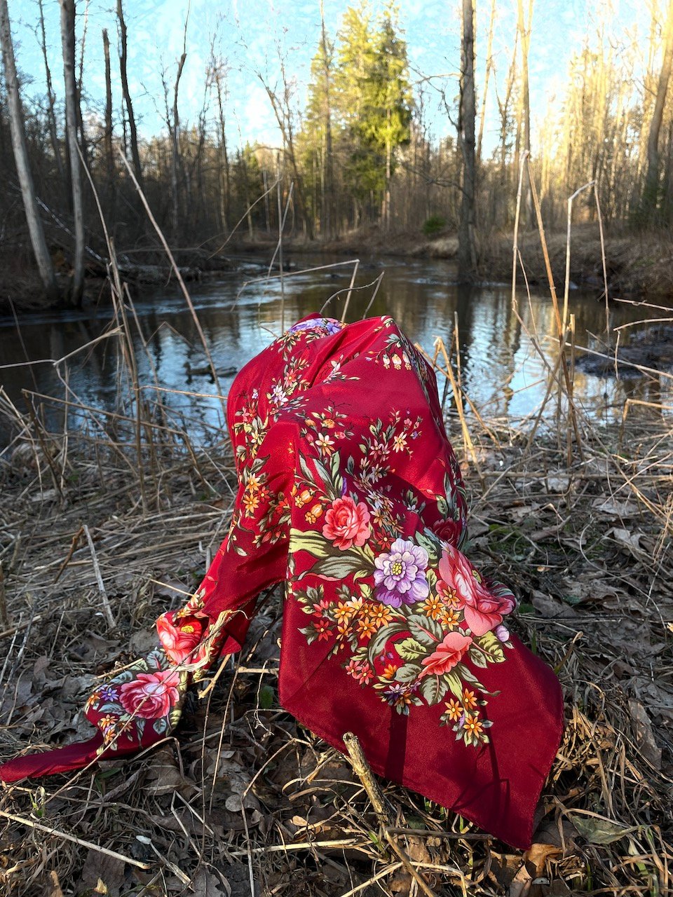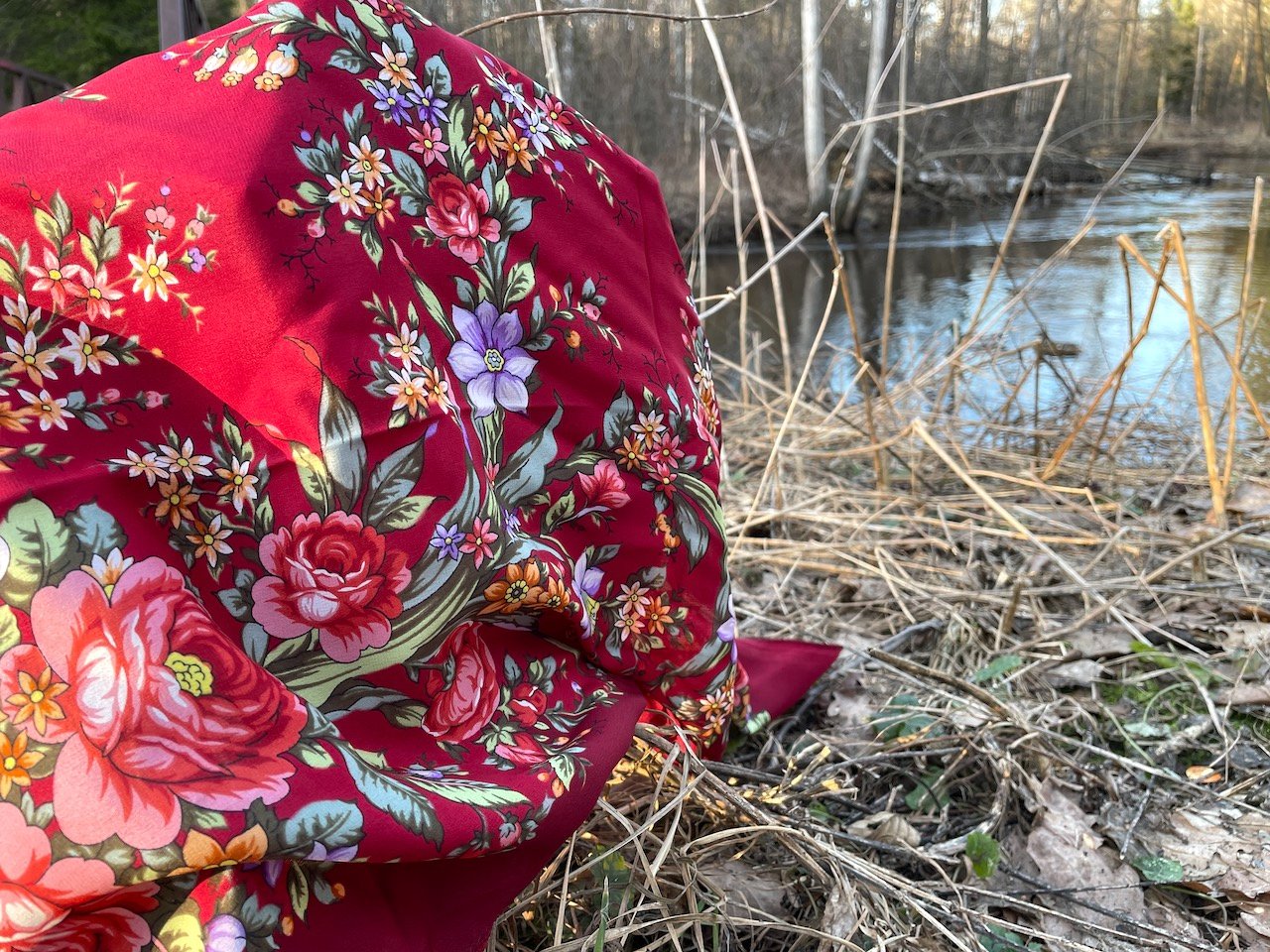 Практически не отдыхающий в эти тёплые дни крепдешиновый платочек Цветочное настроение в 6 колорите. Спонтанная съёмка во время прогулки, поэтому несколько помятый, но такой жизнерадостный.