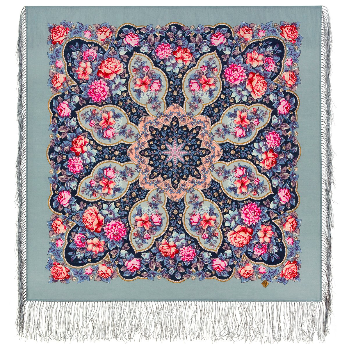 Платок шерстяной с шелковой бахромой, 89x89 см