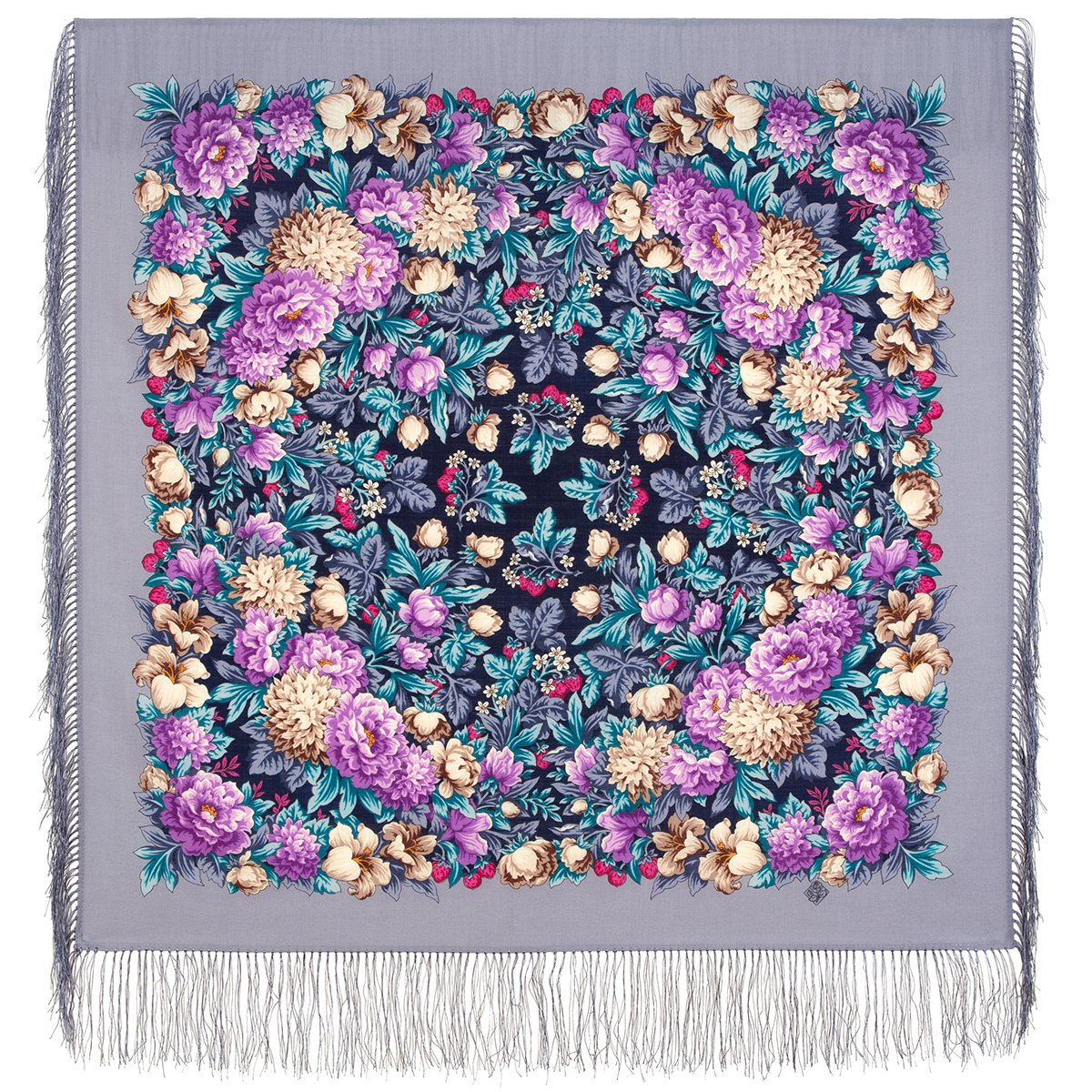 Платок шерстяной с шелковой бахромой, 125х125 см