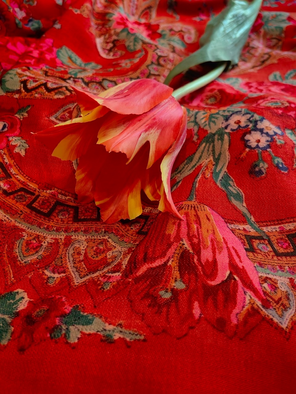 Не смогла пройти мимо тюльпана на шали. Уж больно настоящие подходят к этой шали.