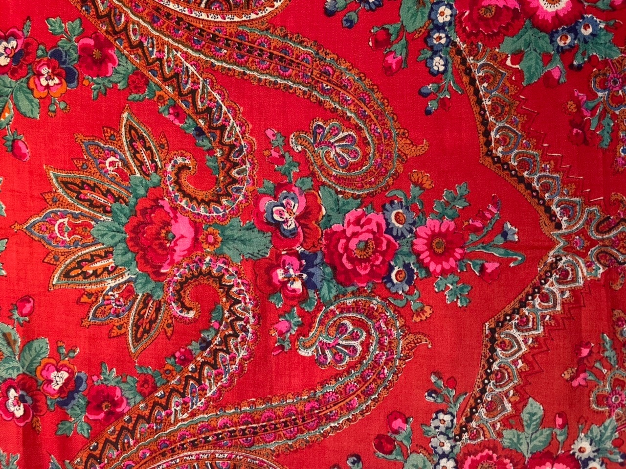 Абсолютно с Вами согласна. Чем больше держу в руках такие шали, там более становится непонятно, почему в XXI веке вообще встаёт вопрос о качестве современной печати, при наличии всех технологий. Тонкая, я бы сказала филигранная набойка при такой плотности рисунка вызывает не только восхищение, но и уважение к мастерству.