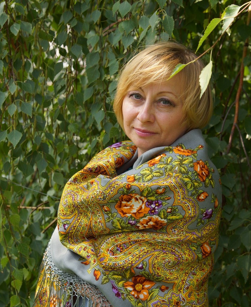 Марина, как красиво ^% , безупречный образ! Эти оттенки синего и голубого Вам очень к лицу! Захотелось тоже такой платочек...