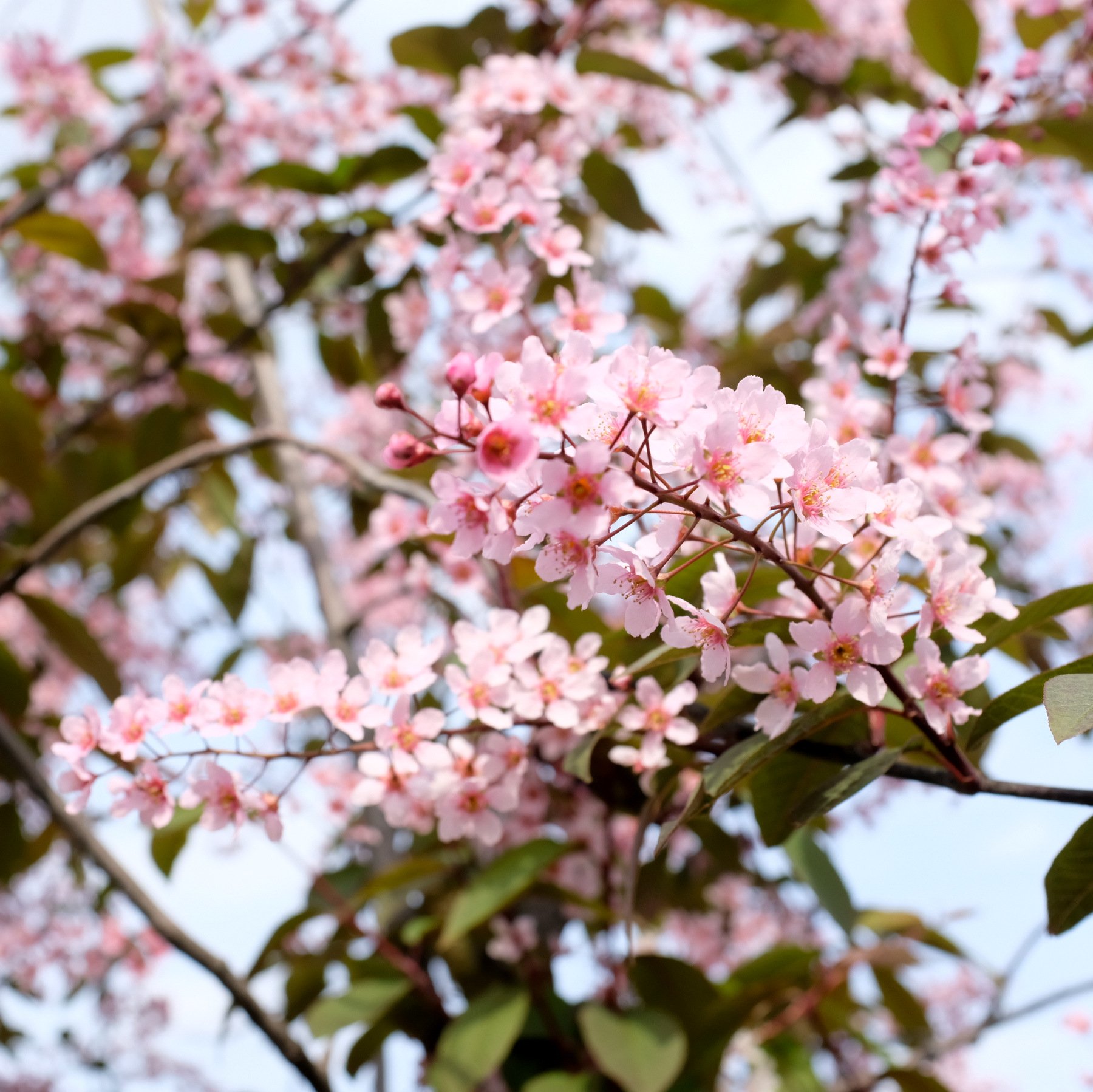 В парке Зарядье я нашла удивительную черёмуху. Розовую!!!