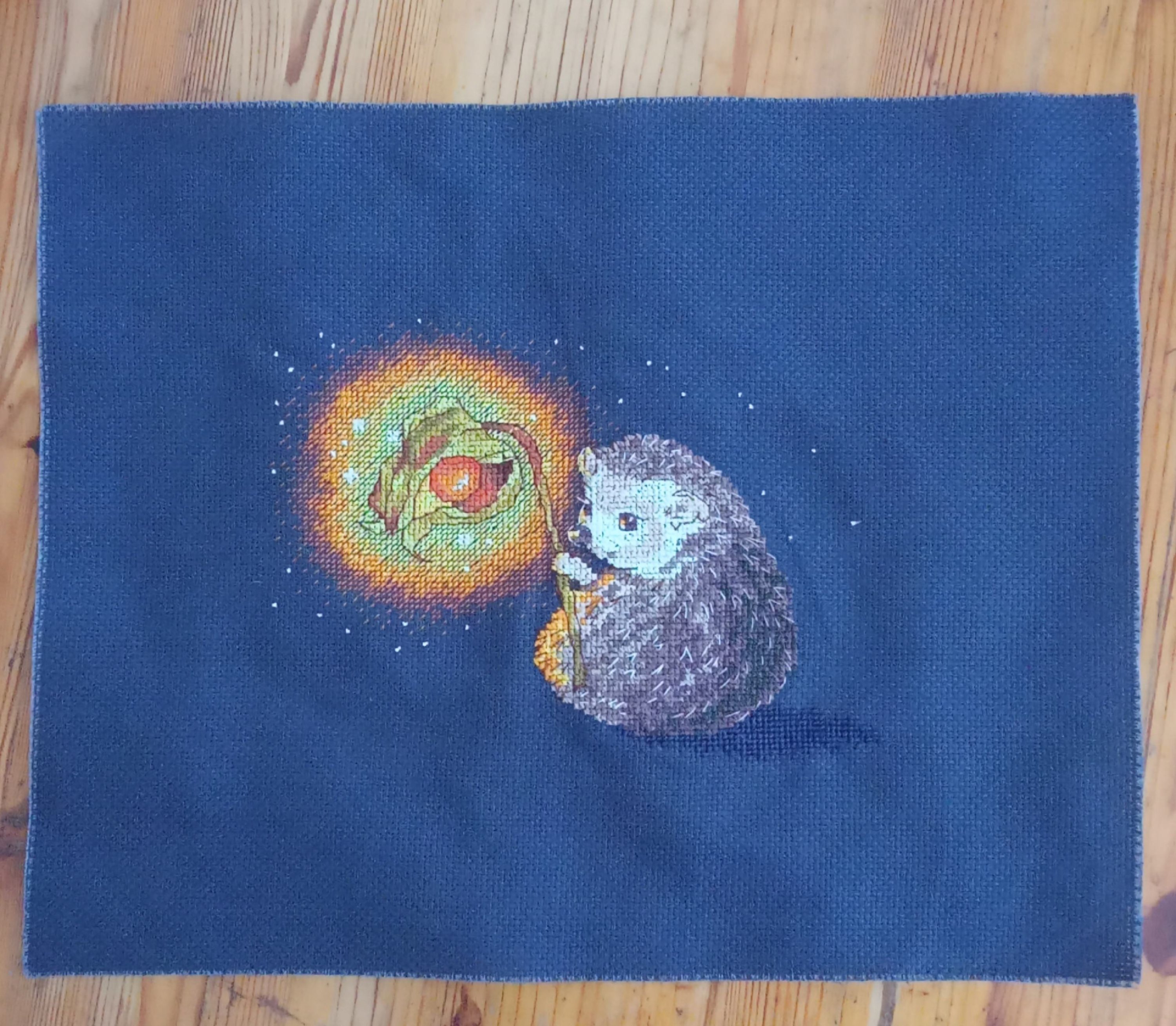 А с ежиком ещё не решила, что делать: хотела на чехол от думки использовать, но кажется, "потеряется" и истреплется. Может, тоже в рамку?