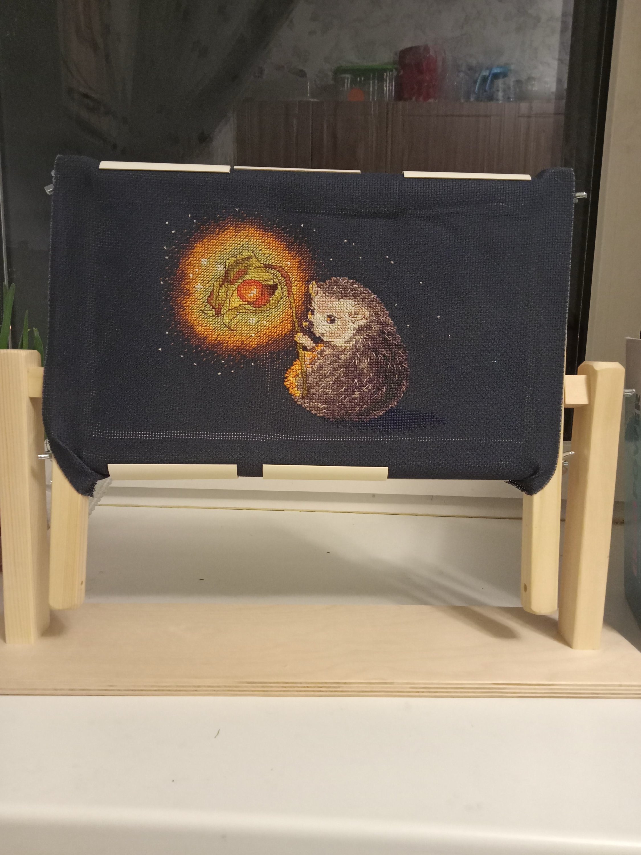 А с ежиком ещё не решила, что делать: хотела на чехол от думки использовать, но кажется, "потеряется" и истреплется. Может, тоже в рамку?