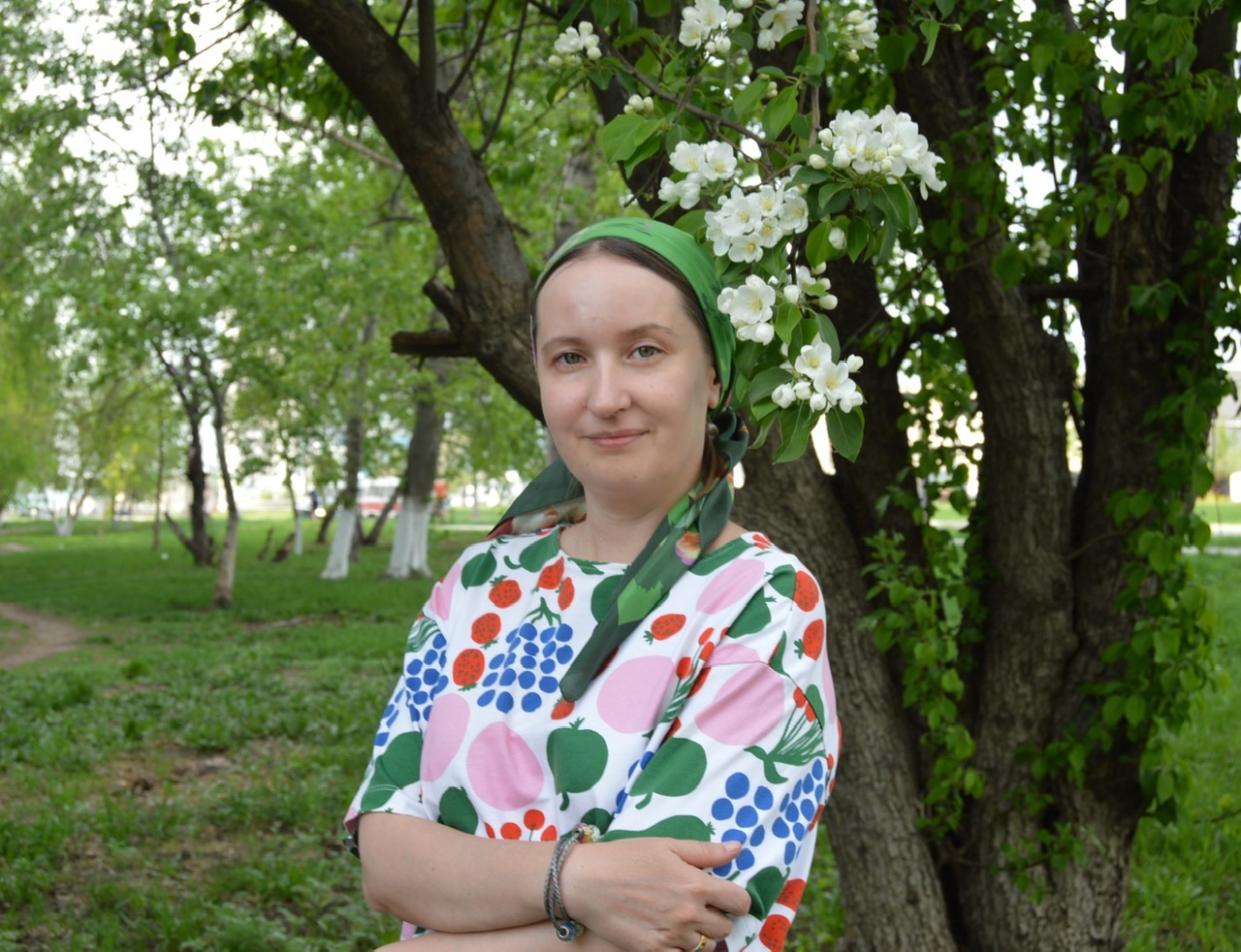 Любуюсь, очень красивая весна и красивая вы в этой весне! Платье очаровательное, платок прекрасно его дополняет, оригинальные украшения, вам всё очень-очень идёт, необыкновенно! Коварство и любовь - стильный платок, написанный в необычной манере и интересный композиционно. У меня он тоже есть, атласный! ::