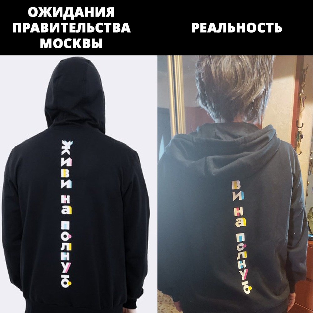 Есть у меня толстовка от проекта "Активный гражданин" правительства Москвы. Не особо носилась из-за надписи. Как оказалось, надо было просто взглянуть под другим углом.)