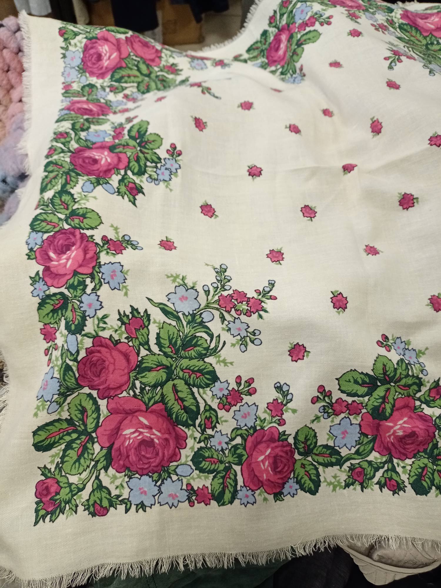 Дорогие друзья, что вы думаете про вот такой платок? Верхнее фото я сама делала, а второе нашла в интернете. Материал - хлопок, во всяком случае, который я фотографировала; второй, кажется, такой же.