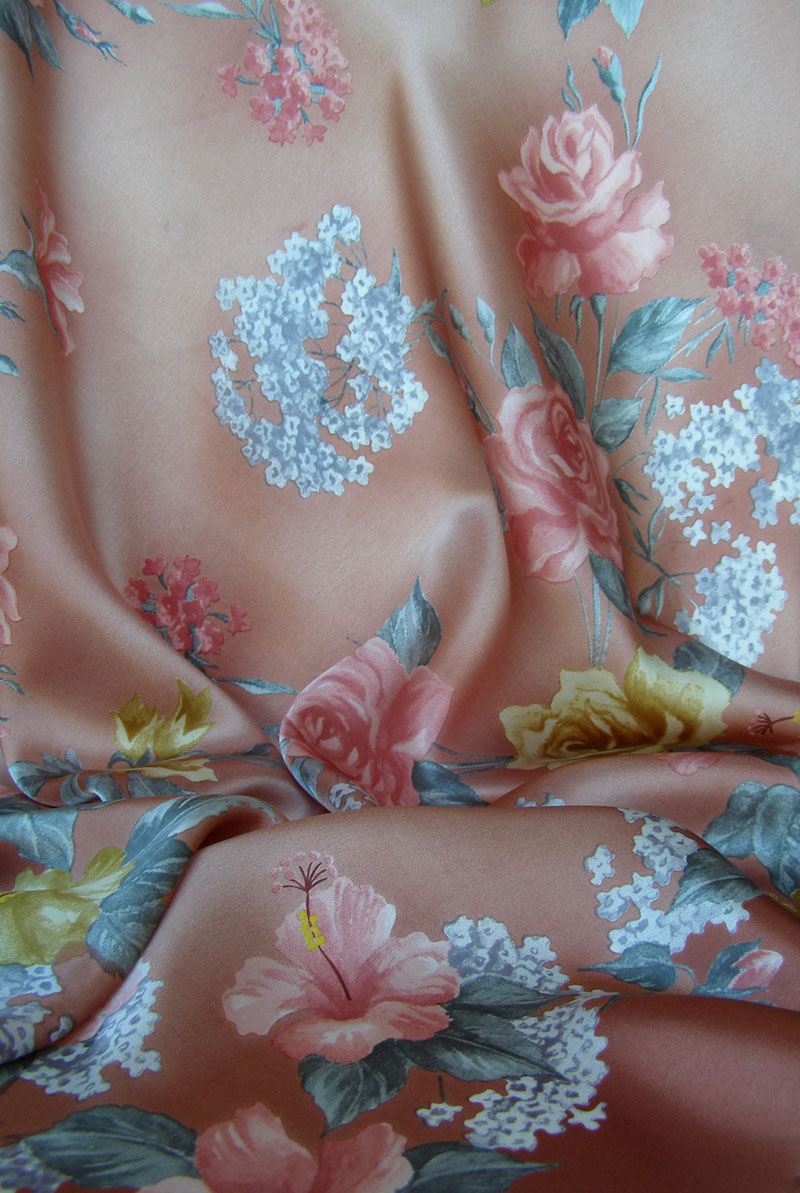 Атласный платок "Утренний свет"-1. С плавным акварельным переходом от тёмного коричнево-розового тона на кайме к более светлой серединке.