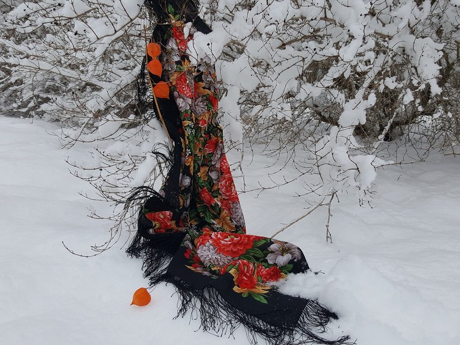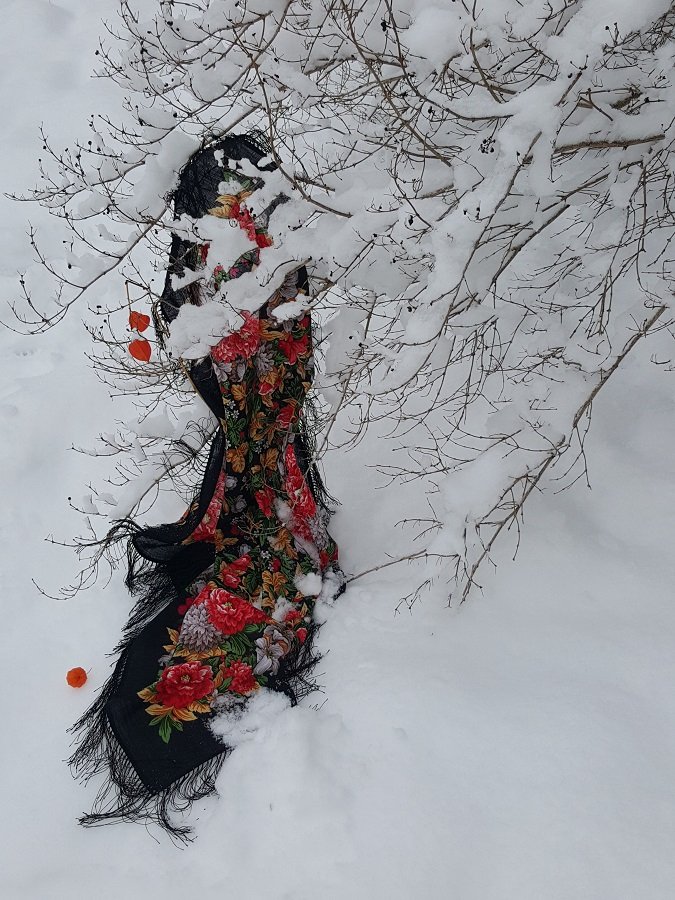 У меня с собой был один платок, поэтому в снег я его не пихала