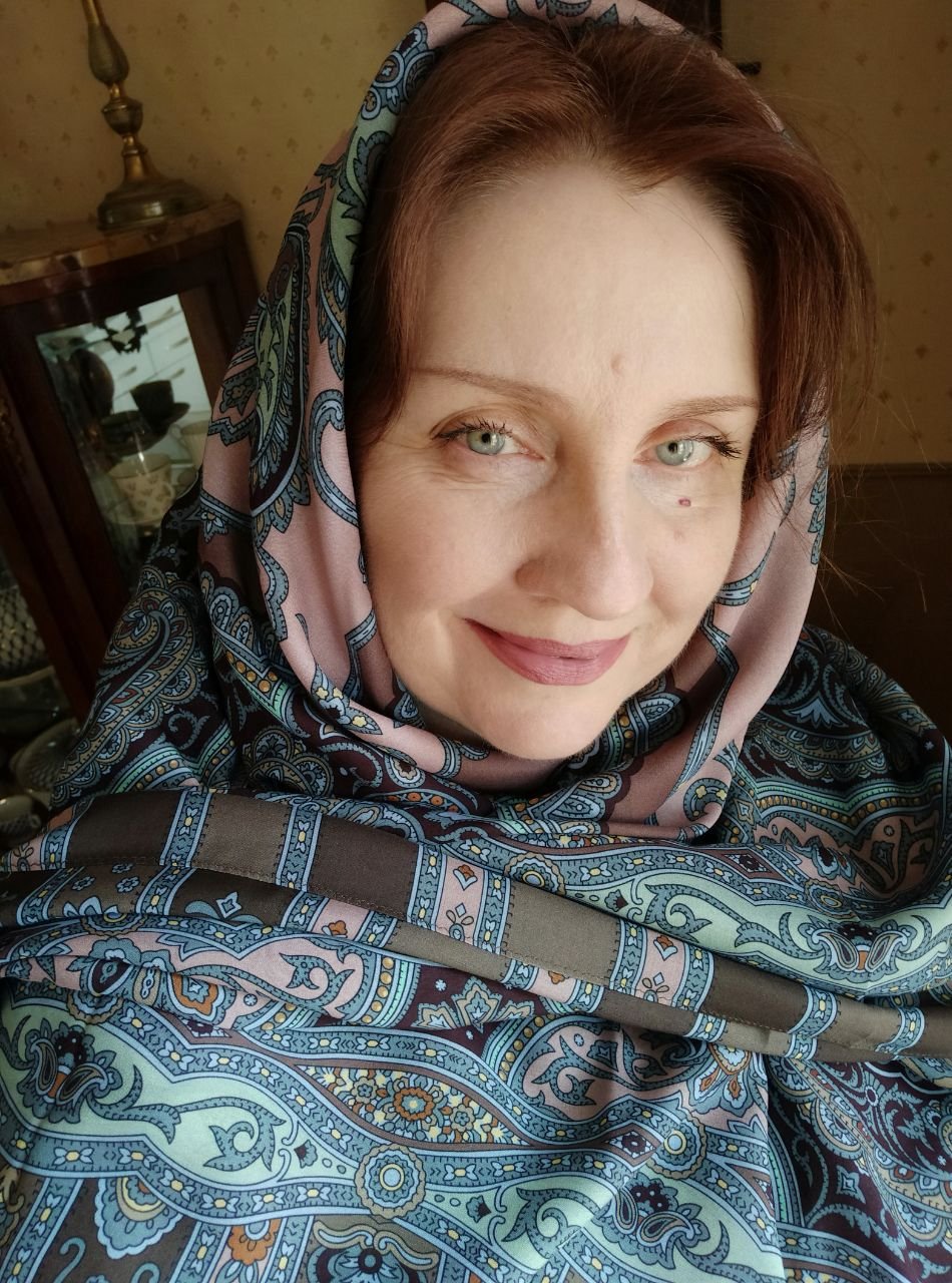 Теперь можно выдохнуть, "детские" примерки пока прерву, перейдя к серьезному репертуару. Закончу эту серию спорным для меня платком. Мнения в семье разделились. Он мне и на показах нравился, а в жизни оказался еще лучше. Конечно, немного "сурьеза" не повредит, но вопрос - не перебор ли в этом случае...