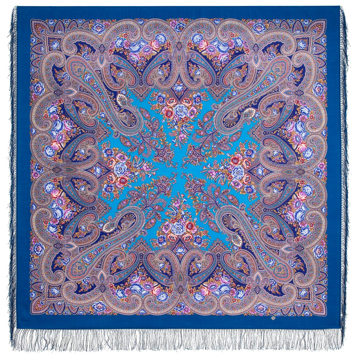 Платок шерстяной с шелковой бахромой, 146x146 см